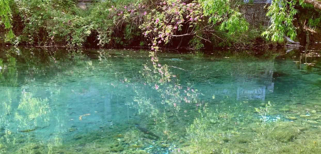 第二天,我们先到的大洛水村,挨着湖边的,有一片怒放的格桑华,湖水太清澈了,天空也非常蓝,白云朵朵,倒映在湖面,完全是天然的天空之城。吃过中午饭,我们去了大众的走婚桥、划了猪槽船、看了神女湾(名字记不清楚了)晚上住在尼塞村,尼塞村不大,只有一条街,我们住在离湖边很近的一个民宿,挺好的,全屋智能。晚上吃的一家成都菜馆,味道一般,凉糕好吃。吃完饭就在湖边散步,没有灯光,夜空倒是繁星点点,湖水浪有点大,没感觉风,不知道怎么会有浪。