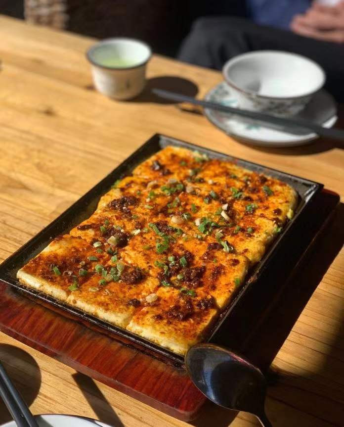 铁板包浆豆腐豆腐炒鸡嫩!口感几乎和鸡蛋一样了。就是上面的酱料略多。