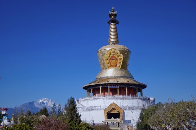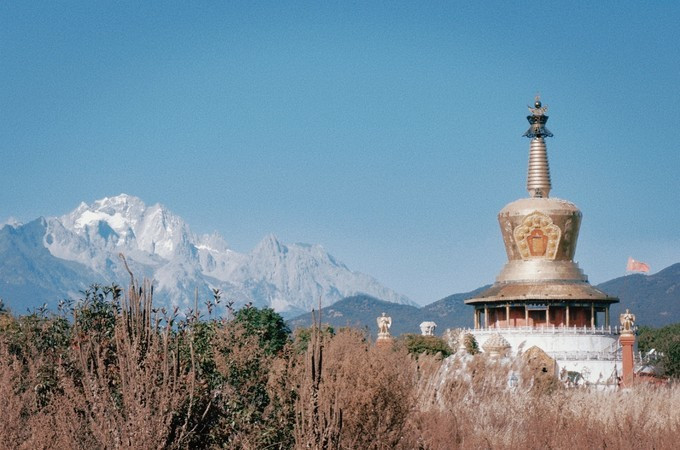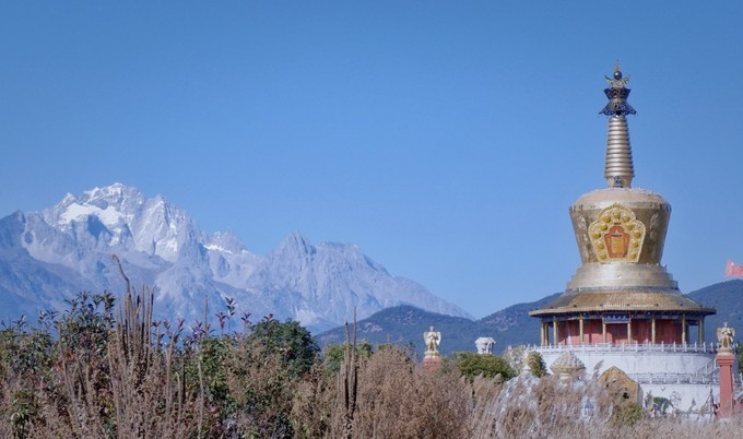知道攀登玉龙雪山,却不一定知道蛇山上的藏传佛教与雪山相映的风景。