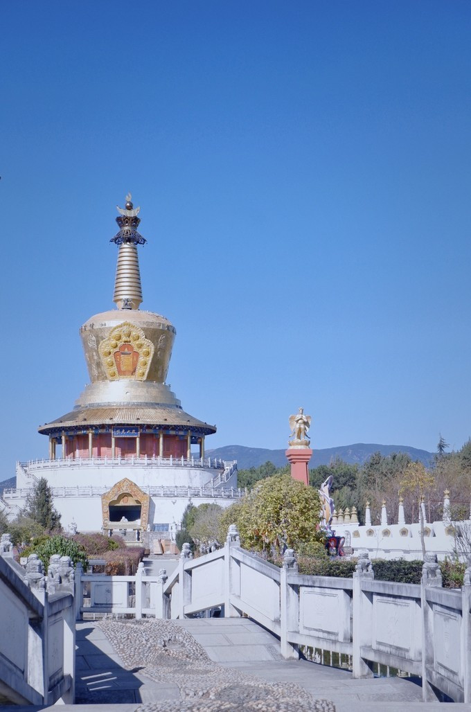 大金塔寺庙矗立于 丽江 城区的蛇山之上,与玉龙雪山遥相对望,蔚然风光尽收眼底。