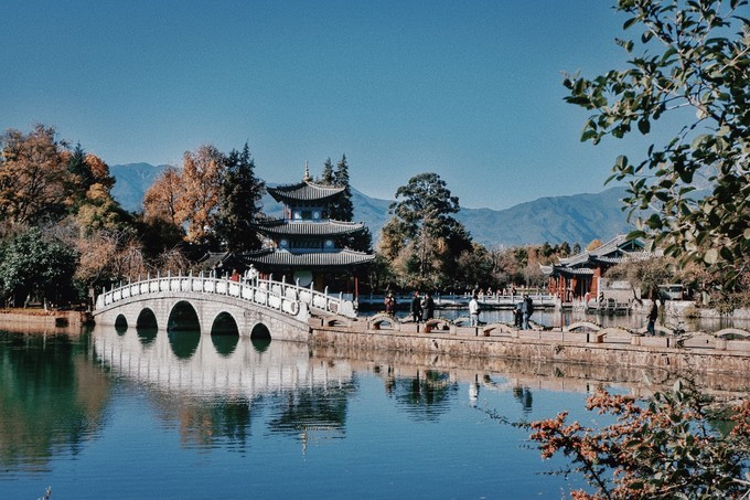 丽江 的黑龙潭公园始建于乾隆二年,古时称作玉泉龙王庙。郭沫若诗咏“龙潭倒映十三峰,