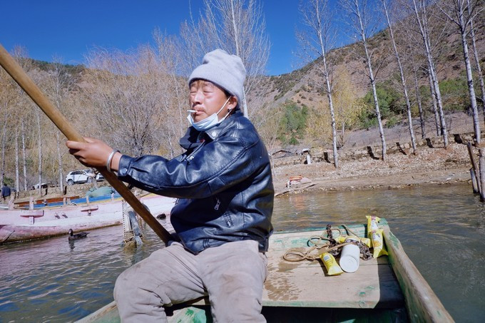 乘坐当地的猪槽船去寻找泸沽湖的源头。