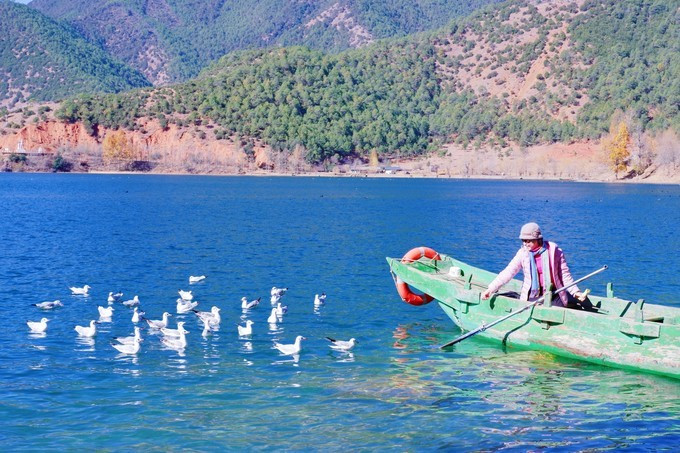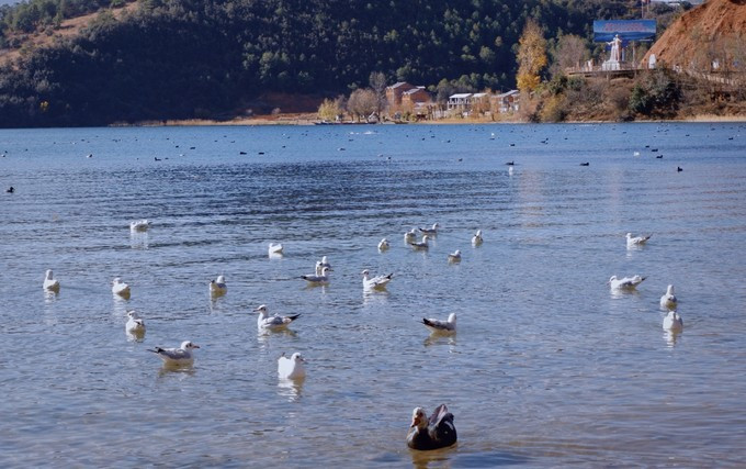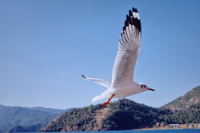不经意间展开双翅,飞向上空又急速俯冲水面,泸沽湖冬季的温度对于海鸥而言依旧是温暖如春。