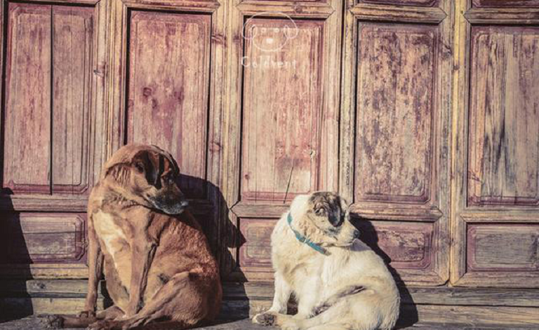 丽江古城丽江古城神同步的两只狗狗,好可爱