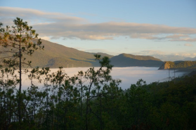 这是到泸沽湖的路途中,师傅让我们拍下的那片云海,很美当然也很冷,这个气温吧,我是穿上了我穿上的最厚装备呀