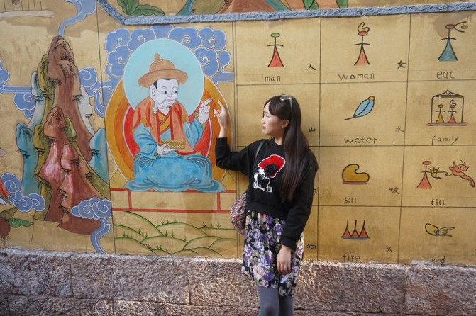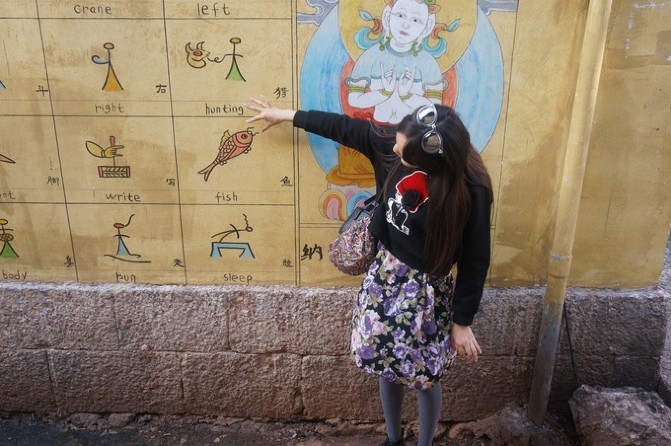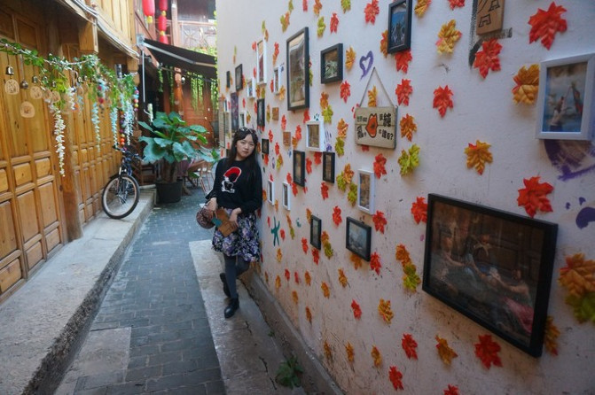 丽江古城有很多有意思的图案,美了墙,也美了匆匆那年 匆匆而过的你