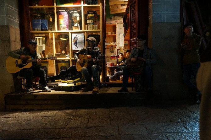 作为一个20岁的菇凉,有一个人出门的勇气,但是安全还是很重要的,就在酒吧门外感受一下丽江的热情就行啦