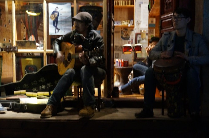 晚上,不去酒吧,就坐在街角,静静地听着,带着你的心和歌声一起流浪