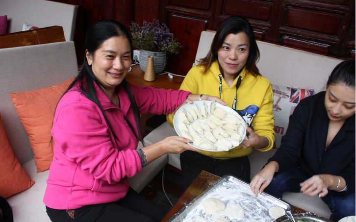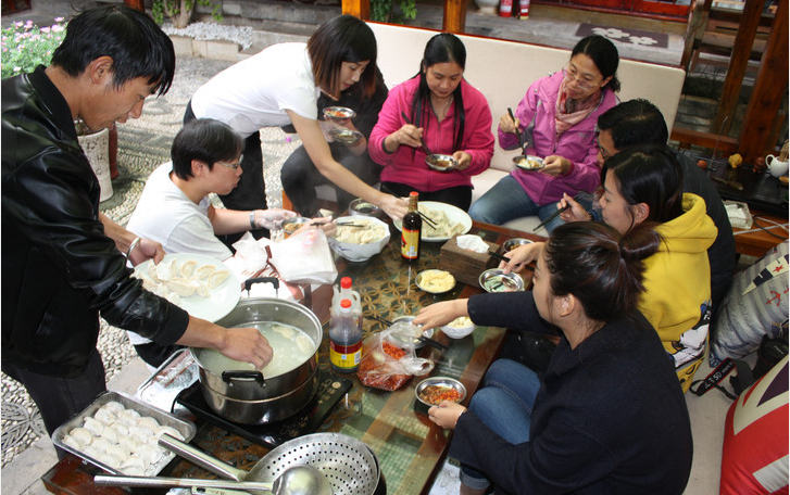 客栈组织的包饺子活动,逢年过节,出去旅游,试问,吃一顿自己包的饺子,是不是美滋滋?