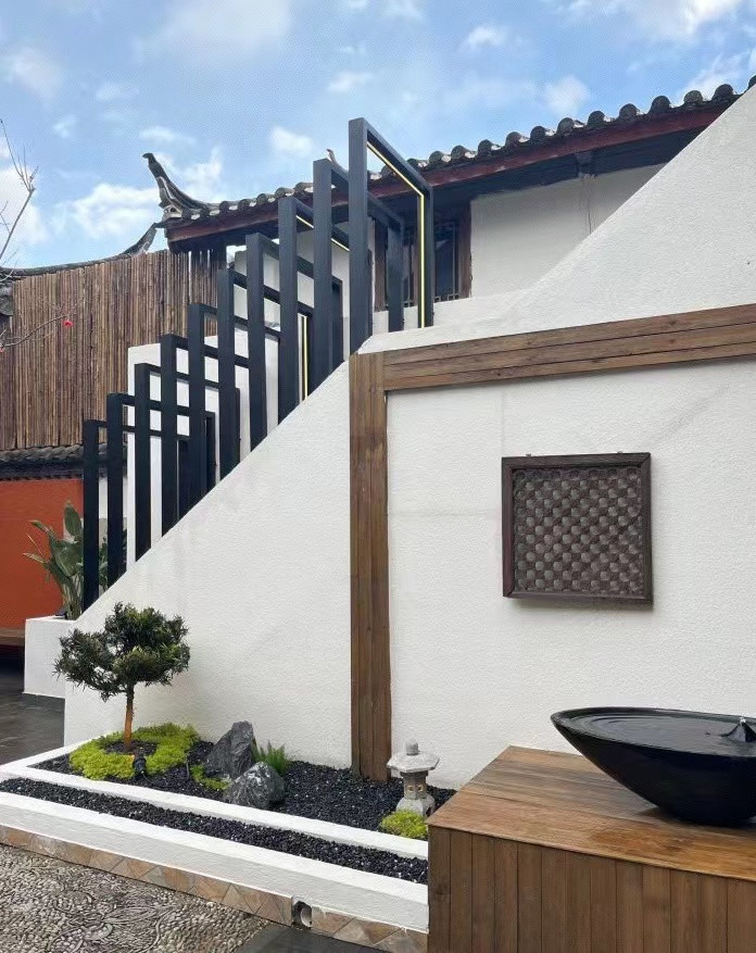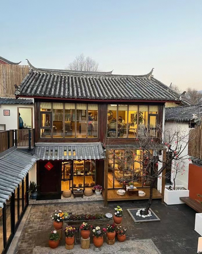 客栈的小院子秋千、长椅、游着金鱼的池子,这些小资的要素几乎一样不少。