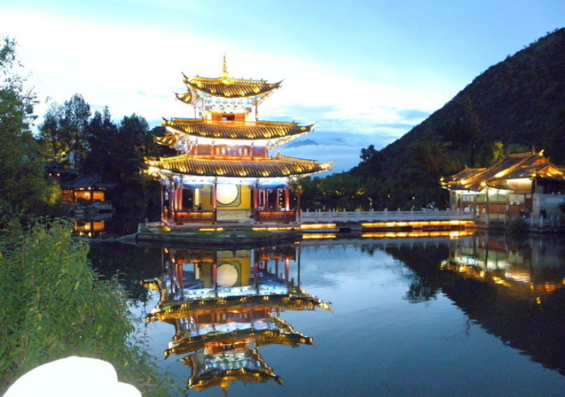 黑龙潭公园:晴天时在那里拍照玉龙雪山的倒影很漂亮,摄影爱好者必去的地方。那里的水很甜,可以直接饮用。不收门票,但需要出示古城维护费收据。从古城入口大水车沿着河水逆水而行,步行 10 分钟就能到。南门附近坐3路公交,在黑龙潭站下车。晚上七点以后就没有查票的了。