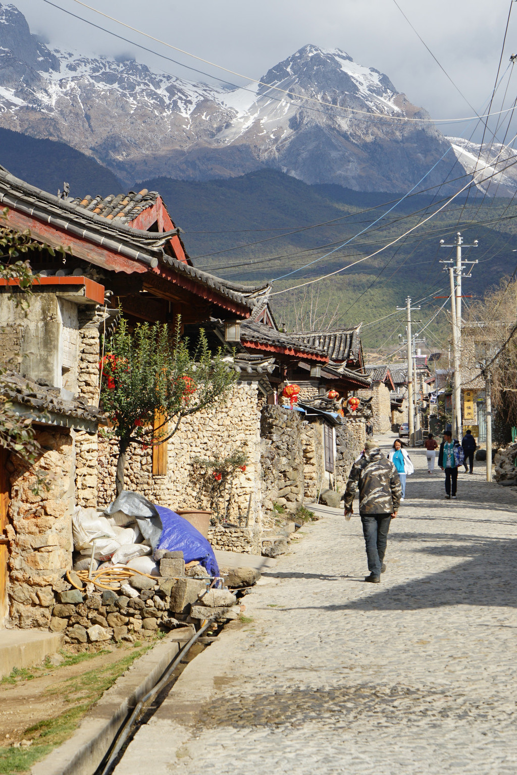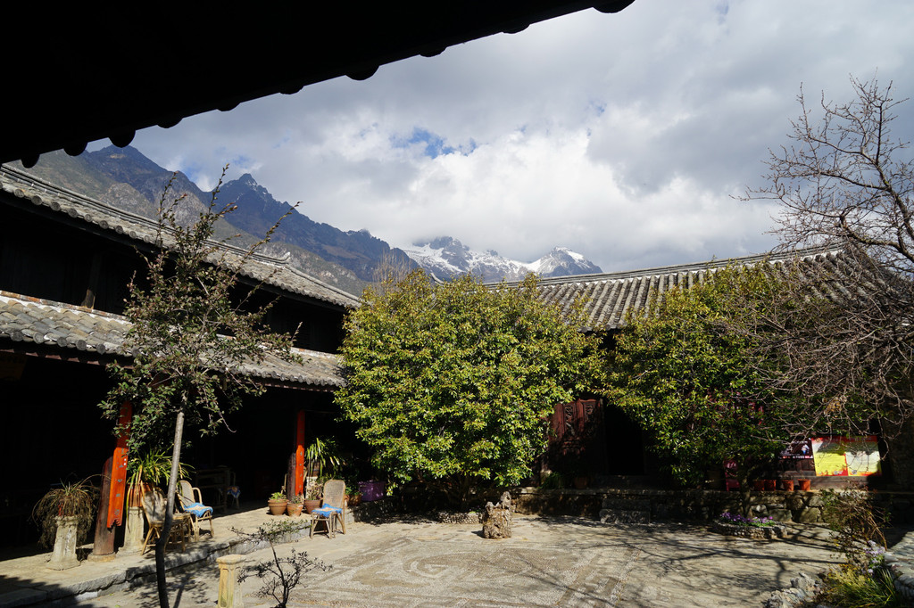 背依玉龙雪山,家家户户窗含西岭千秋雪。