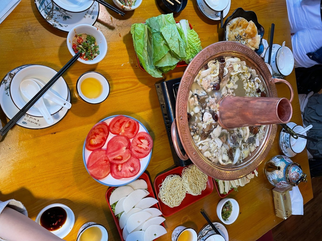 然后,我们紧接着有又去了木府这边。木府有特别出名的腊排骨。但是我们没有吃,而是吃了一顿火锅。其实这边的火锅店很多,但是味道真的是参差不齐哦。所以,来之前建议大家做好攻略。我们吃的这个火锅味道一般。