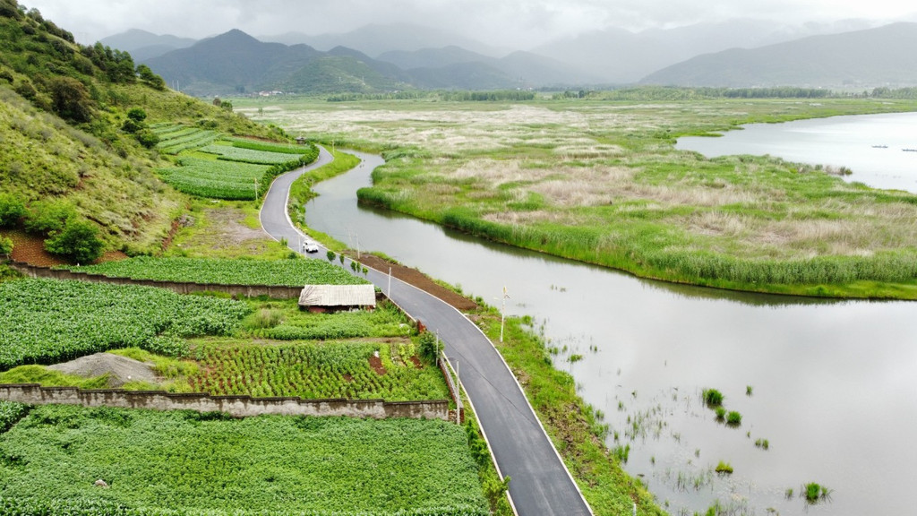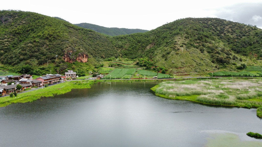 第一站去的就是草海。事实上,这里的绿植确实更多一些。其实那些纵横明显的区域都是当地人种植的水稻。