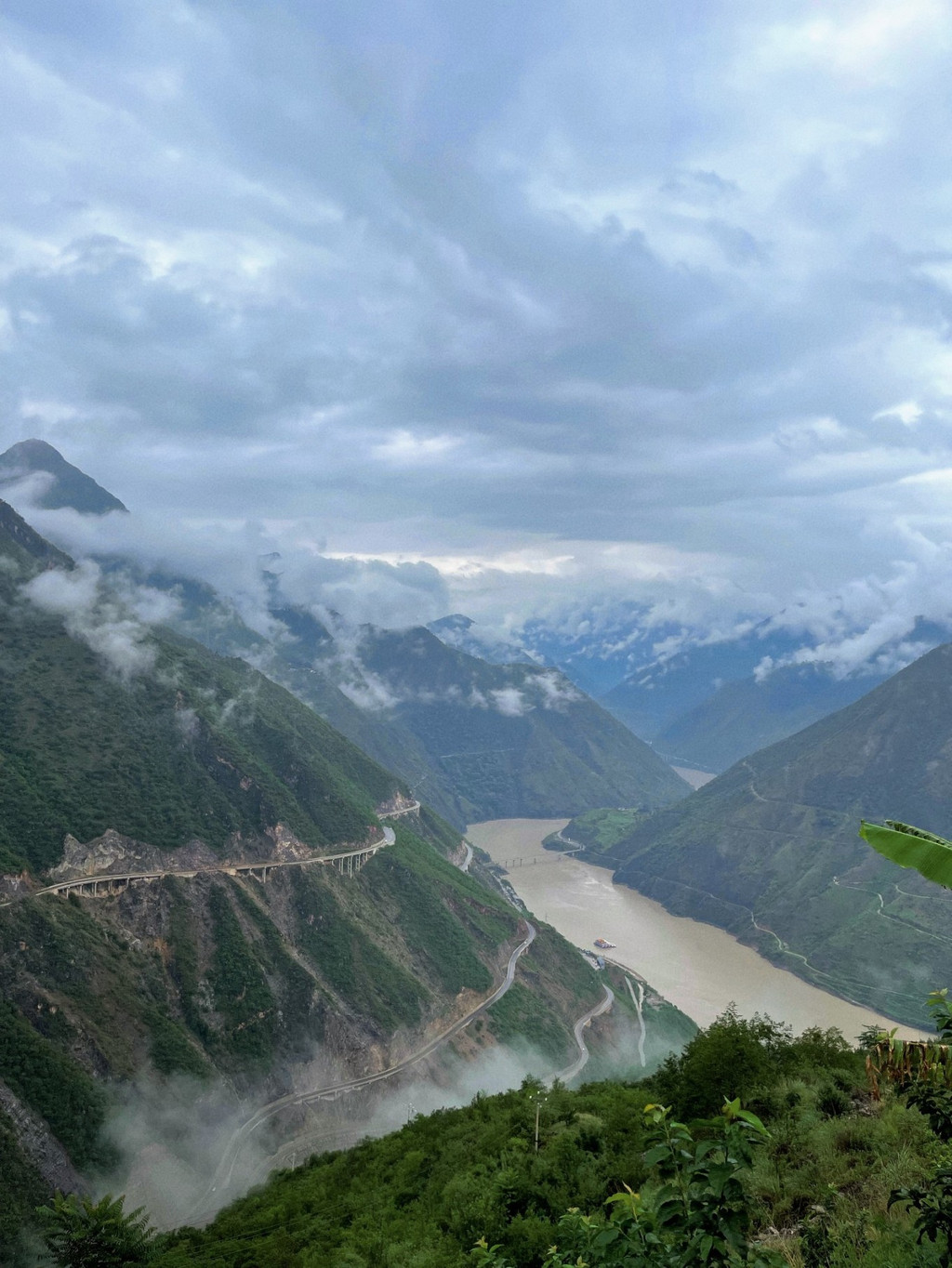 从高处看这里的公路,其实还是比较窄的。当然,能够在这样的环境里面开辟出宽阔的道路来,已经很厉害了。