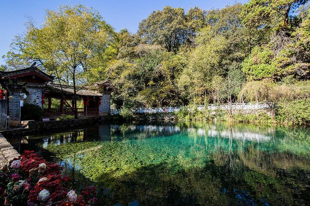 束河古镇依山傍水,街头有一潭水,称为“九鼎龙潭”,又称“龙泉”,泉水清澈,游鱼可数,潭周绿柳垂地,松柏苍翠。从潭中溢出的流水蜿蜒于街中道旁,远近汩汩有声。整个古镇沿河而建,与丽江古城异曲同工之妙。镇中心有长33米、宽27米的小小四方街,与古城四方街一样可以引水冲洗。
