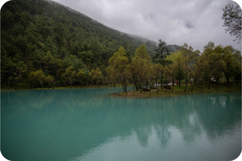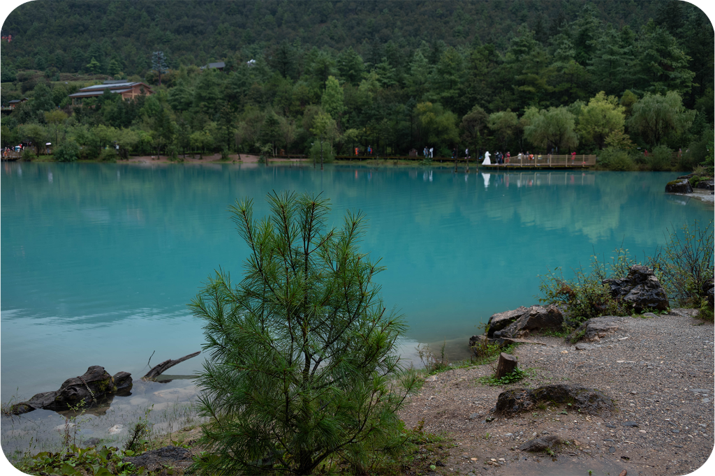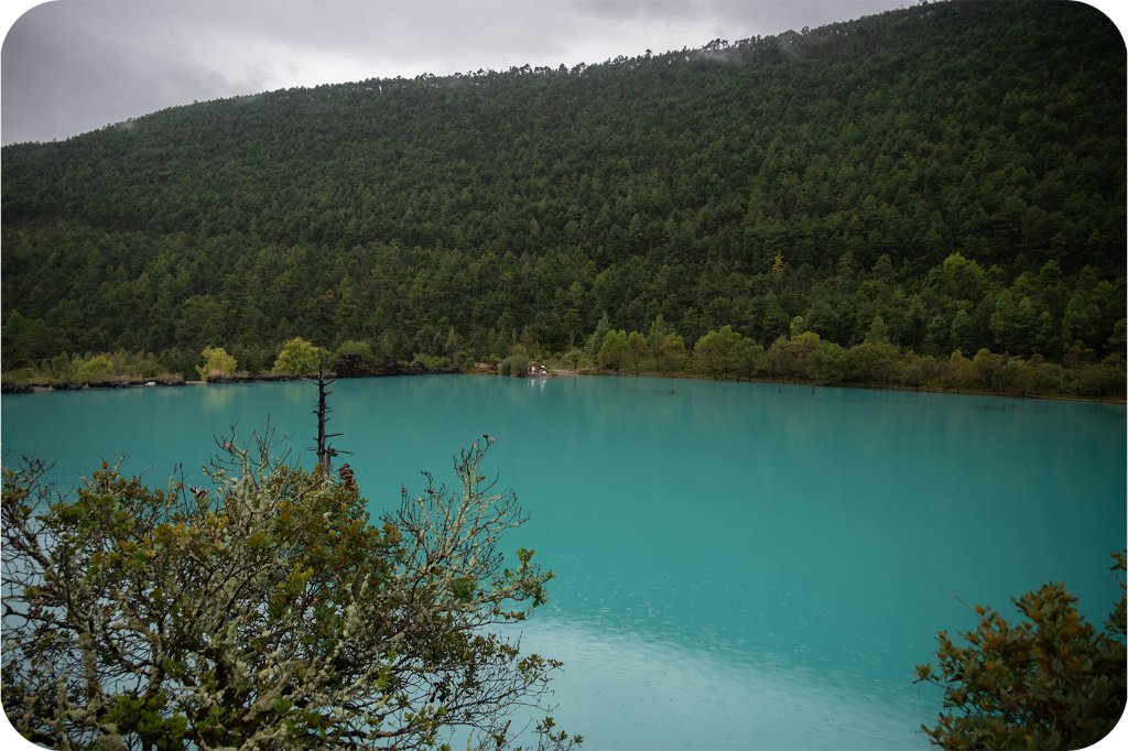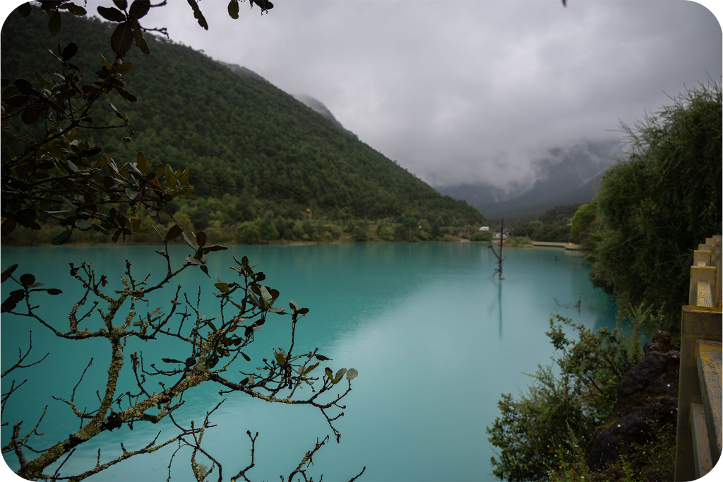 蓝月谷入口下方的这片蓝绿色的湖泊,则是四个湖泊中的蓝月湖。