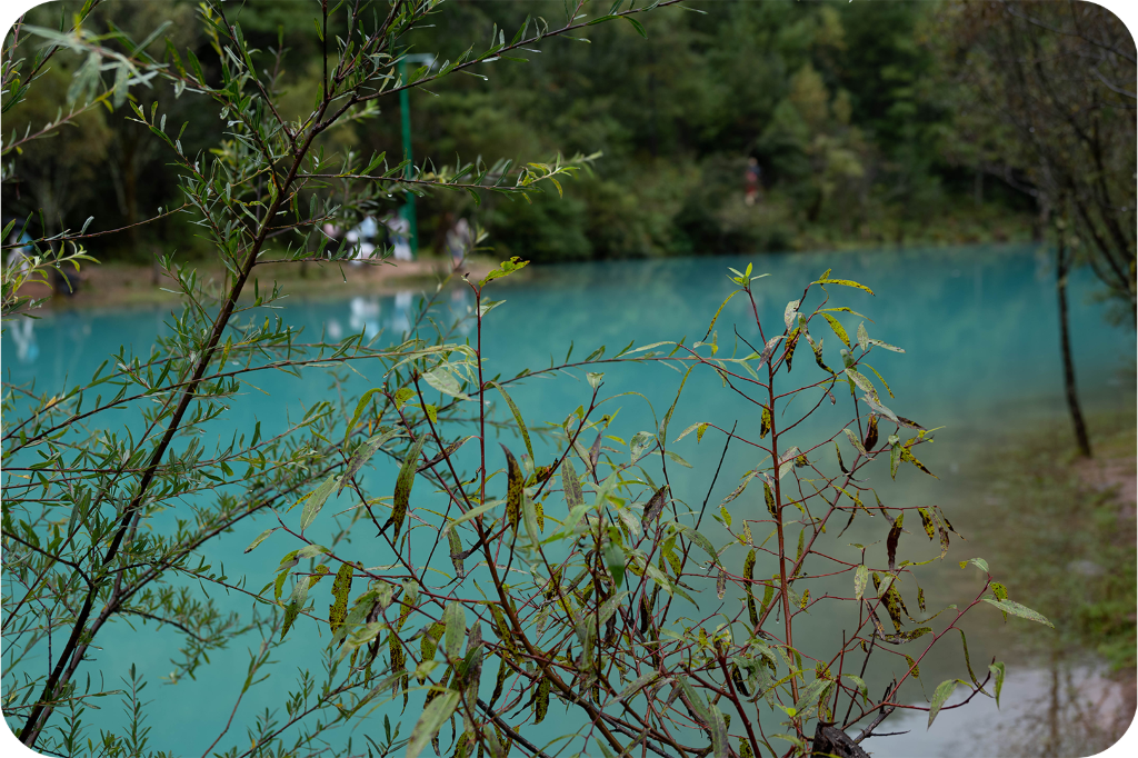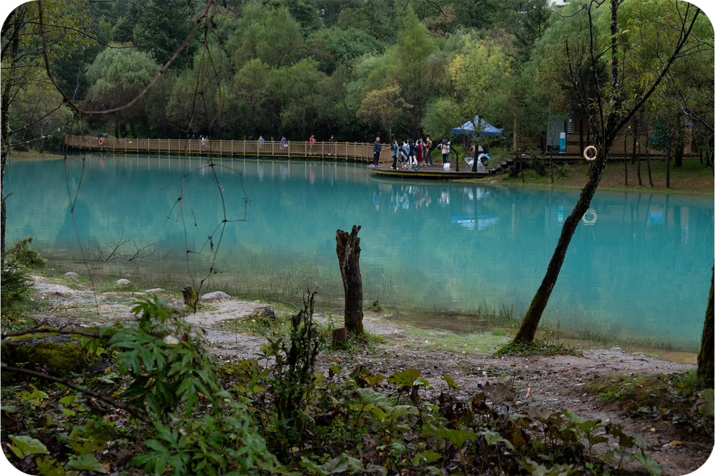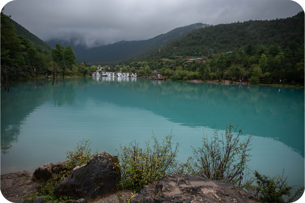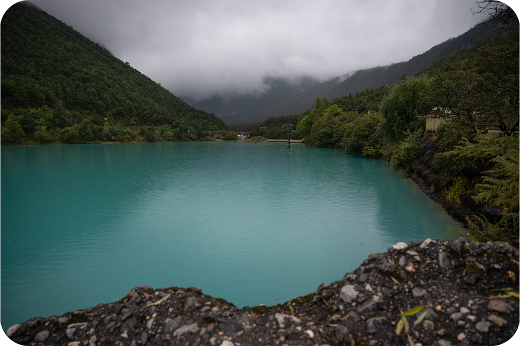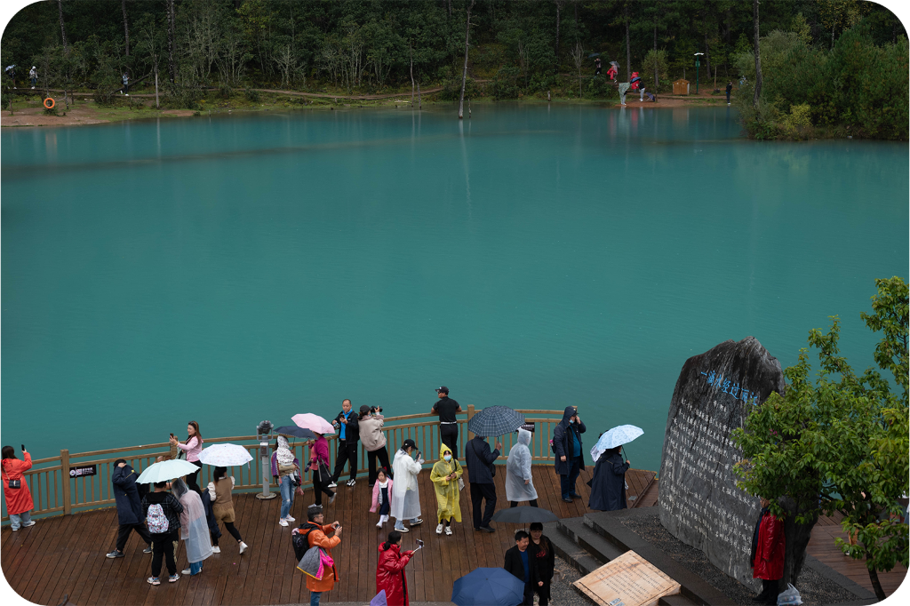 蓝月谷入口下方的这片蓝绿色的湖泊,则是四个湖泊中的蓝月湖。
