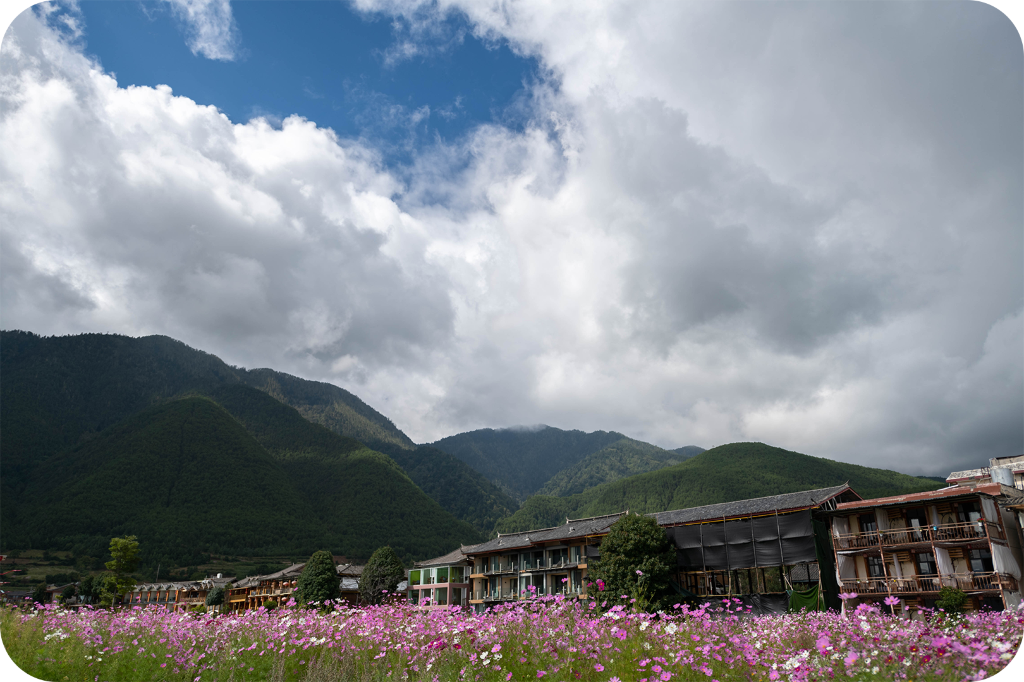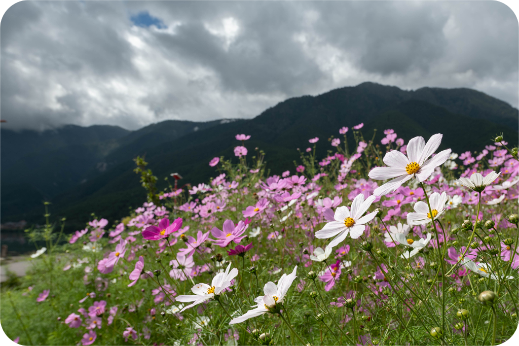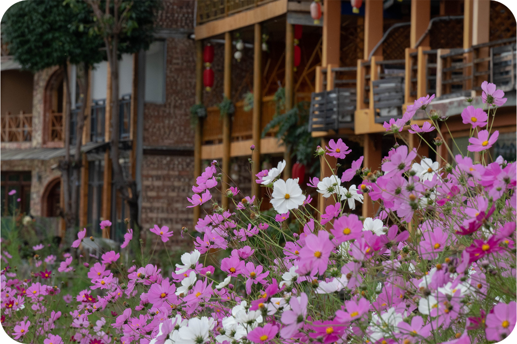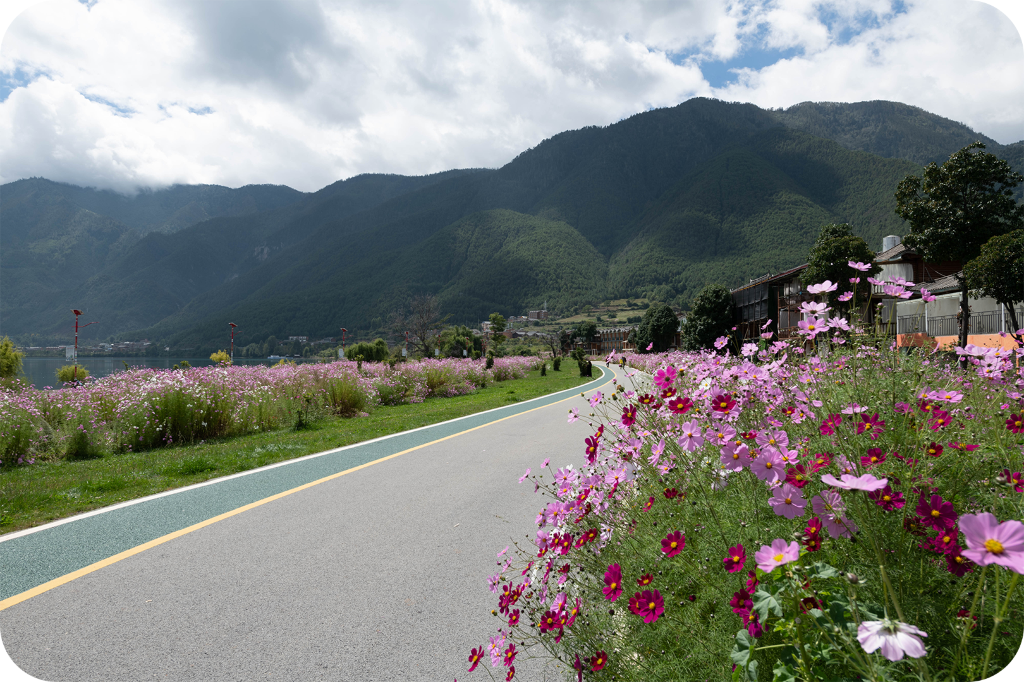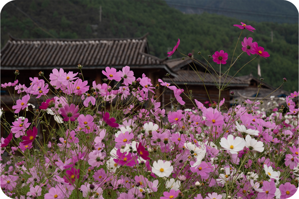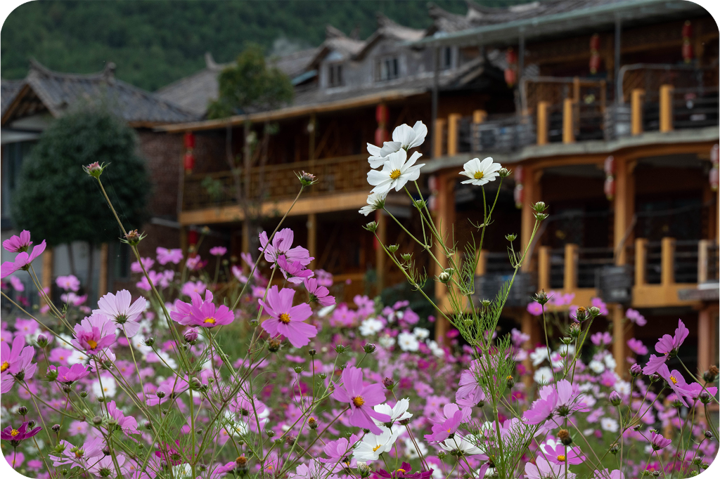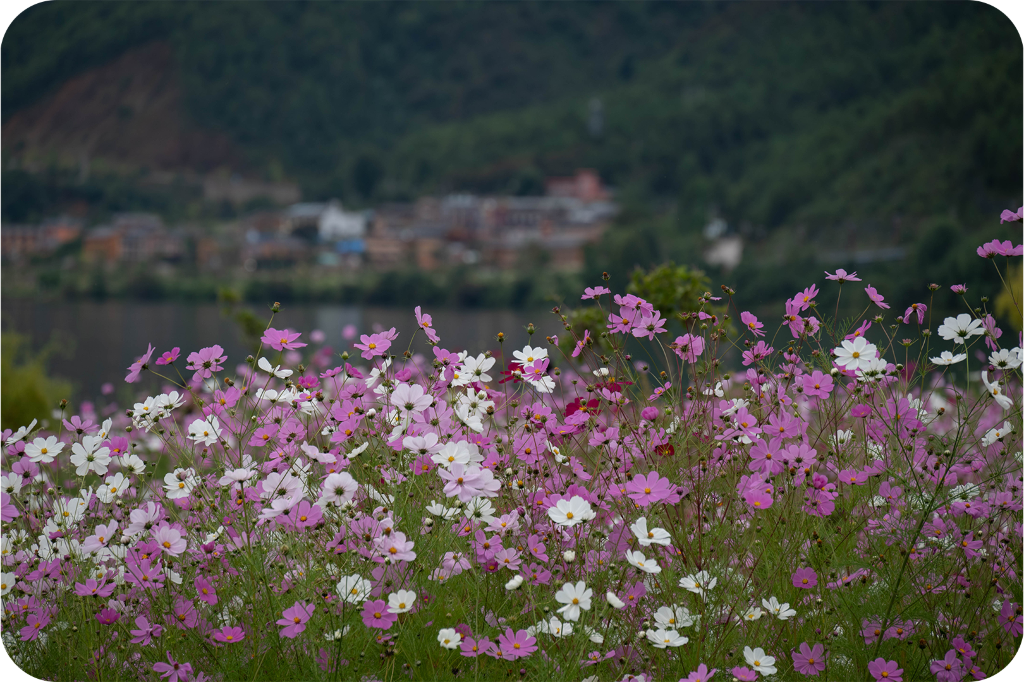 结束了泸沽湖的游船体验,午后漫步在大洛水村内,四周都盛开着美丽的格桑花。