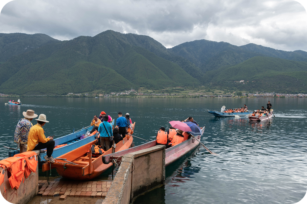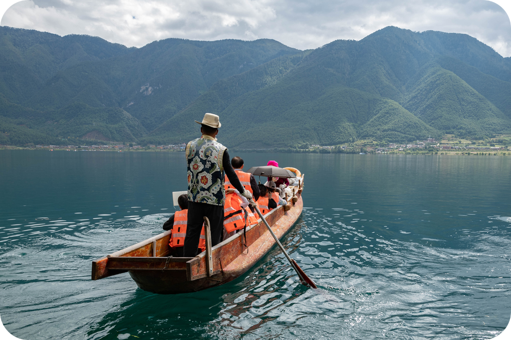那么既然来到了泸沽湖,怎能不乘坐猪槽船体验一把游湖的乐趣呢?