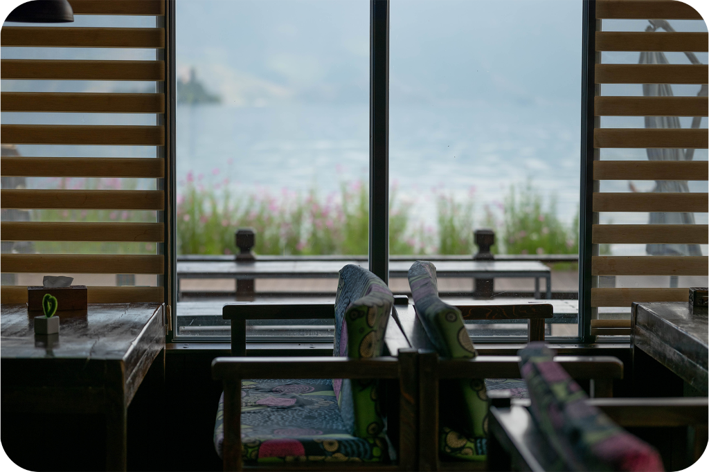 在餐厅的一旁坐下,窗外就可以看到美美的泸沽湖。