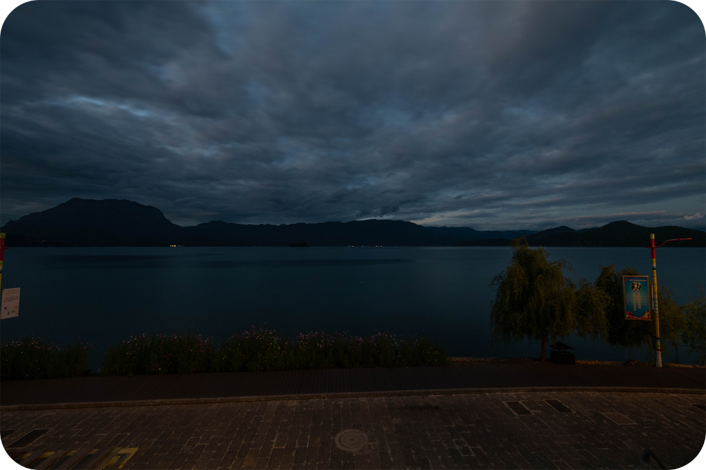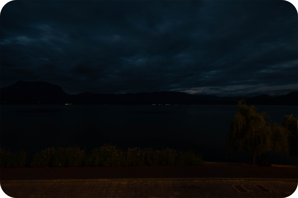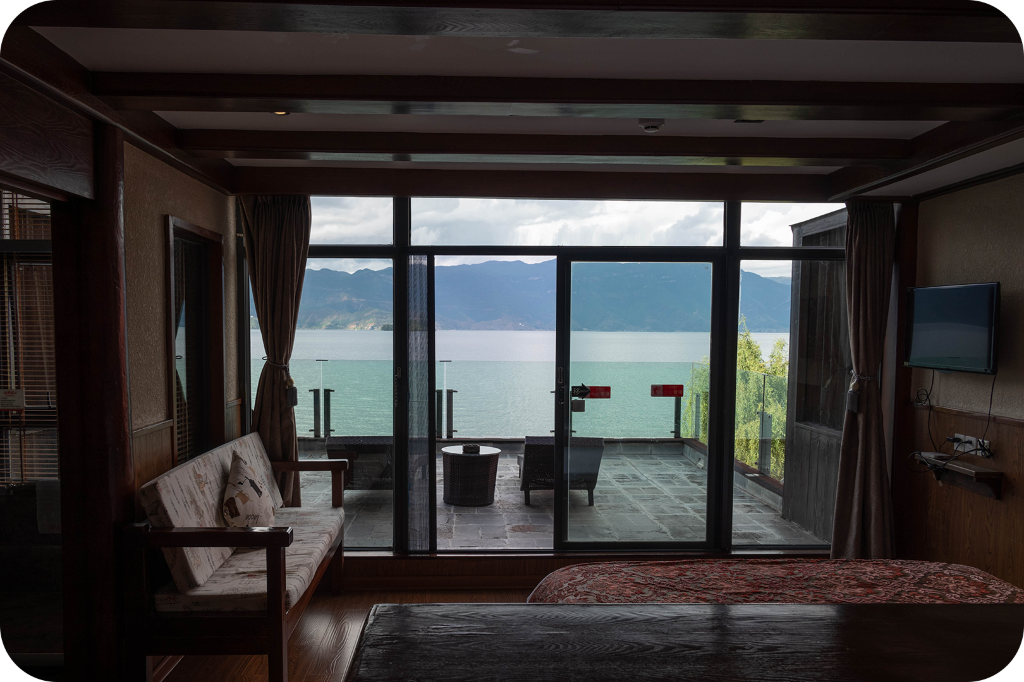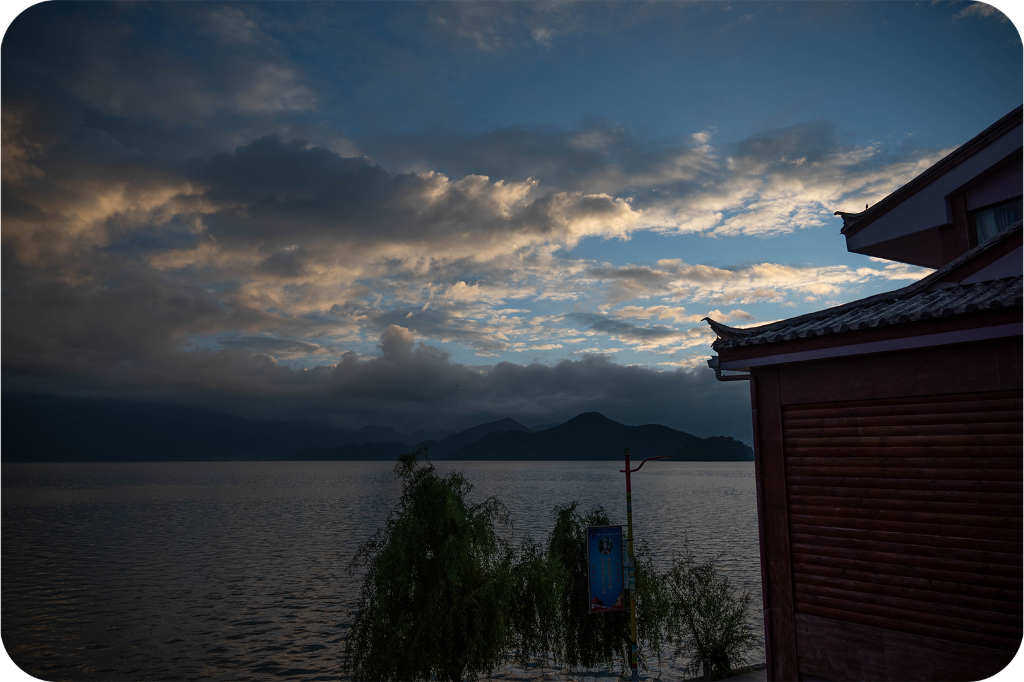回到酒店阳台上,目送着泸沽湖的渐渐入夜。