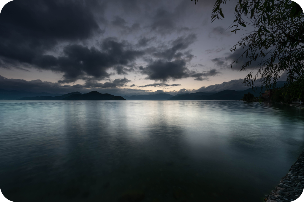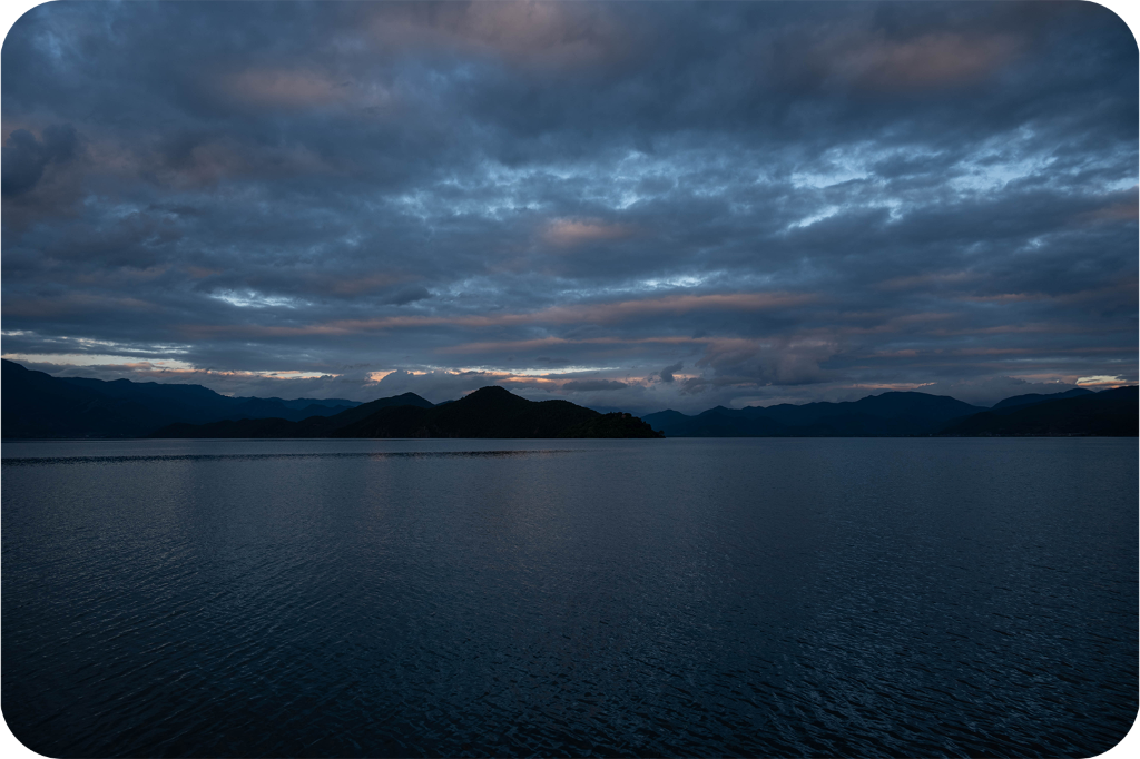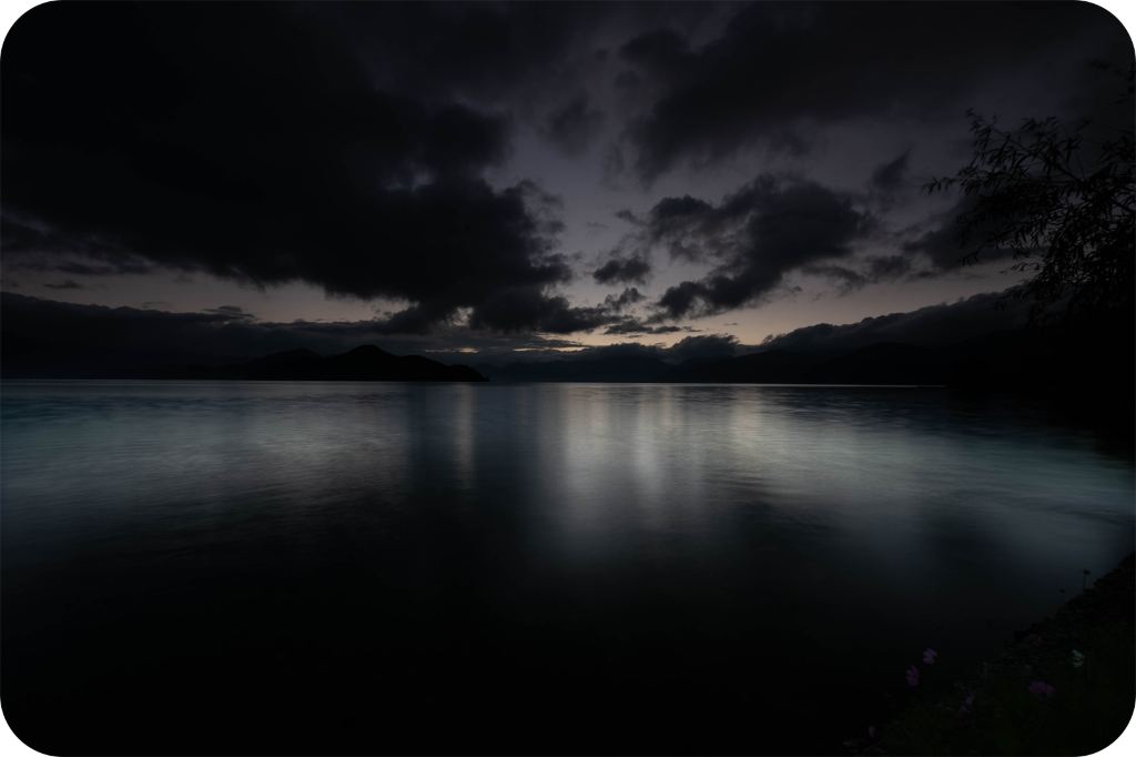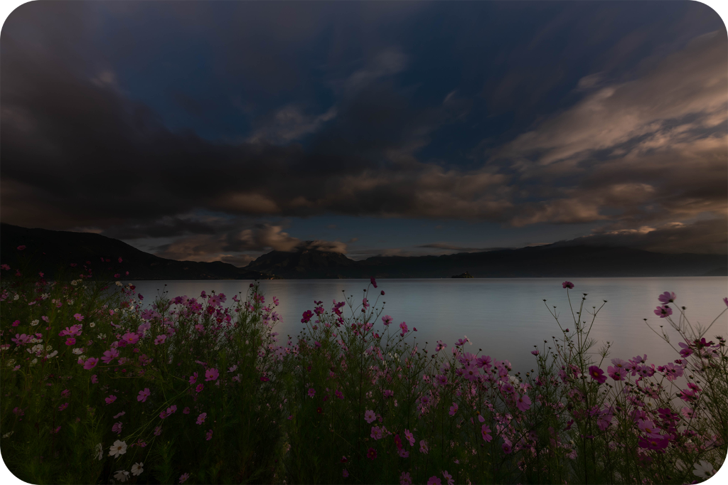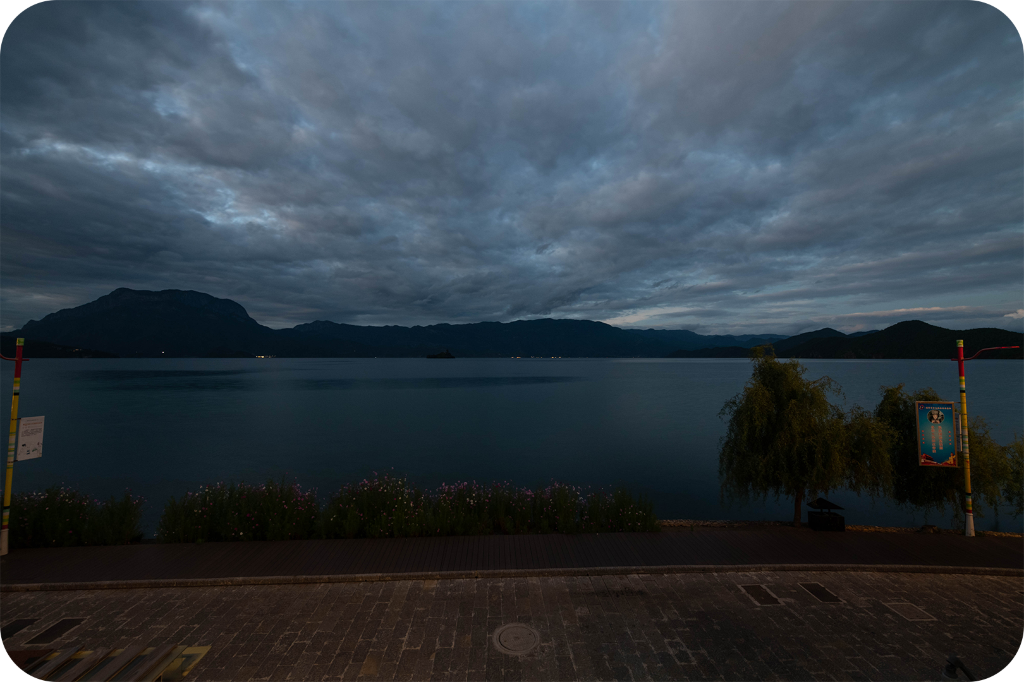 回到酒店阳台上,目送着泸沽湖的渐渐入夜。
