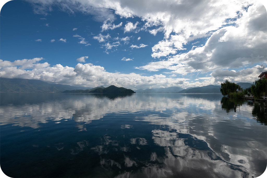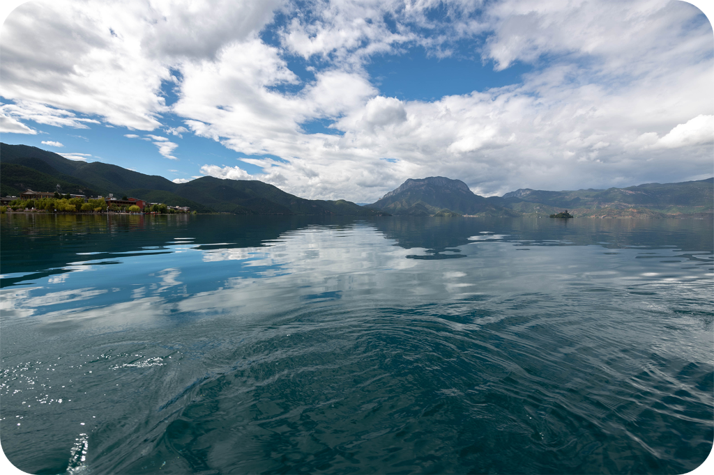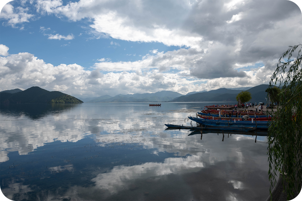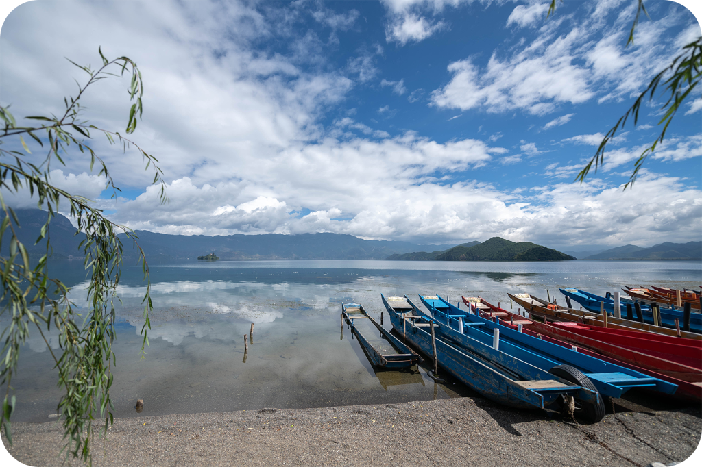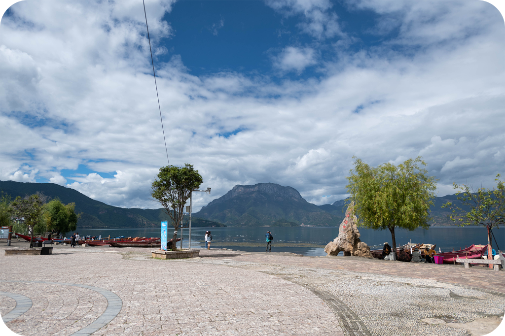 一直心驰神往的泸沽湖如今终于出现在了眼前,和蓝天白云的美景是如此的般配。