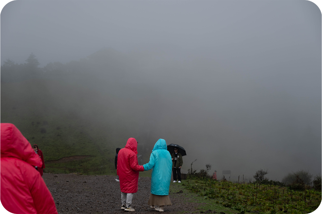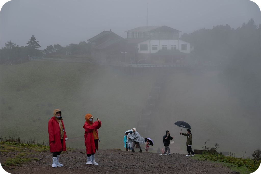 虽然顺利到达牦牛坪,但是在走下缆车之后,除了周围的游客之外,基本上什么都看不清。