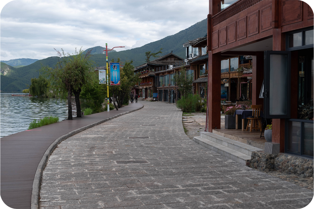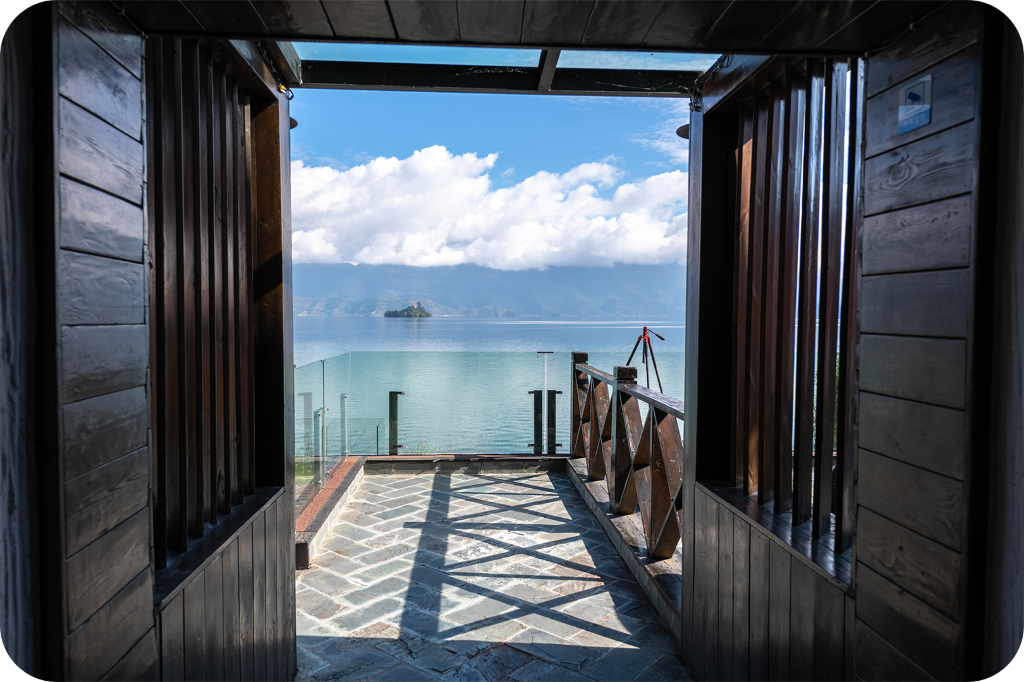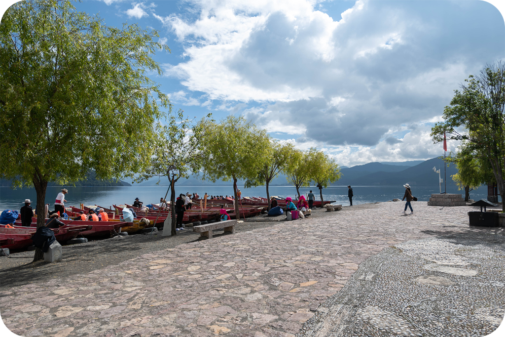 走出酒店,泸沽湖距离酒店大门只有数米距离。