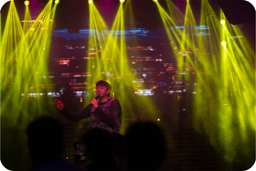 浪漫樱花,遇见美好,台上的大哥唱得很卖力。