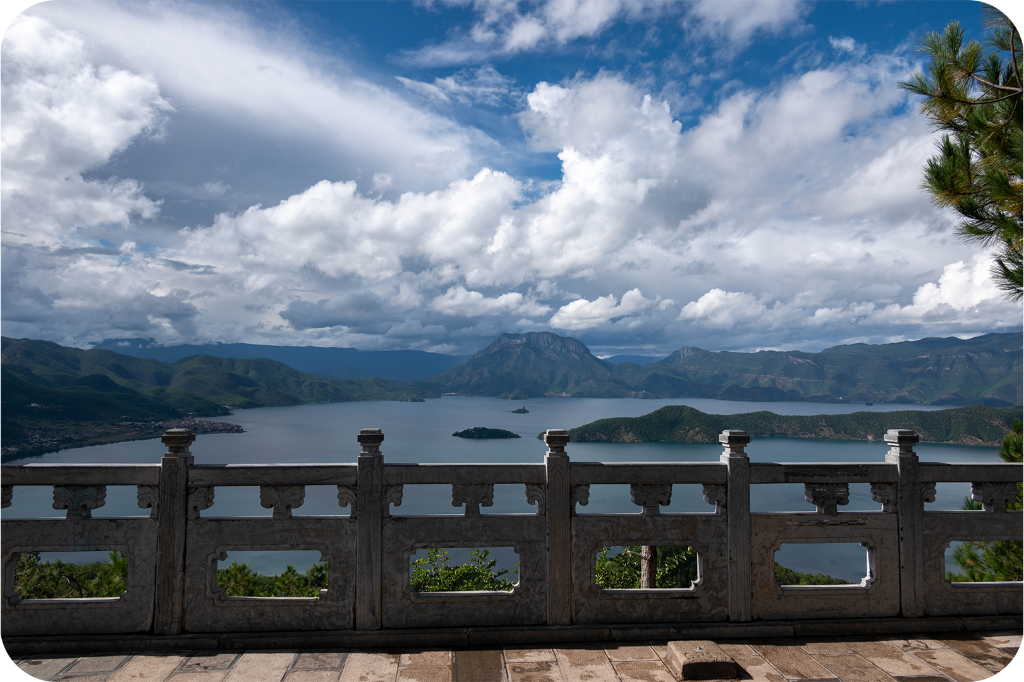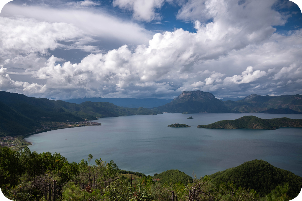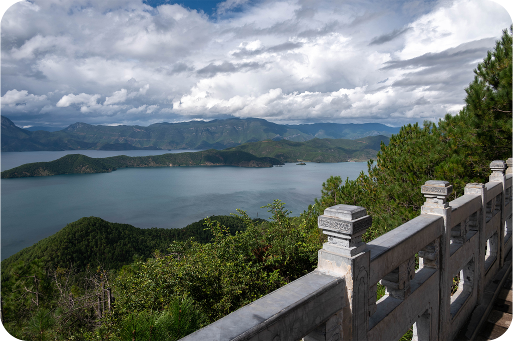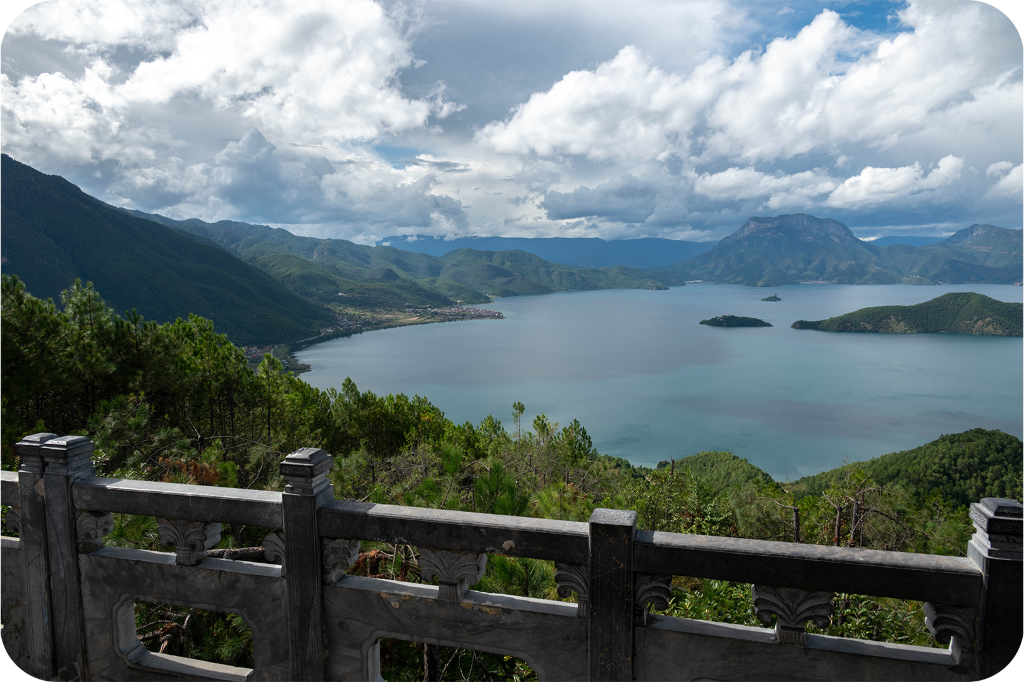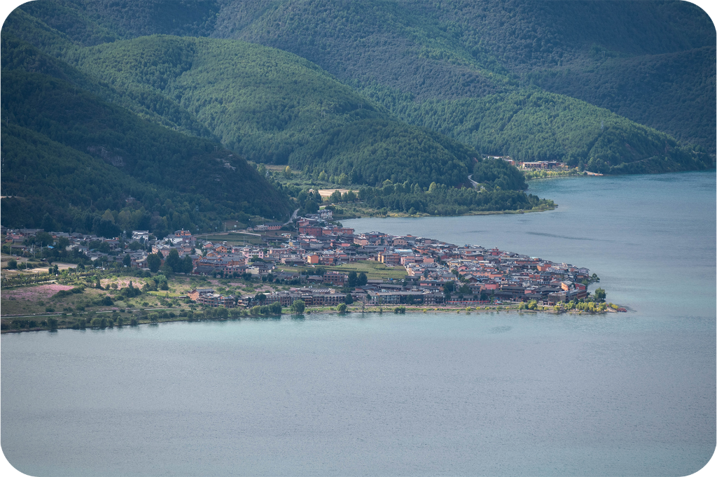 在继续前进之前,我们首先来到景区入口处旁边不远处的泸沽湖观景台,在这里可以远眺整个泸沽湖。