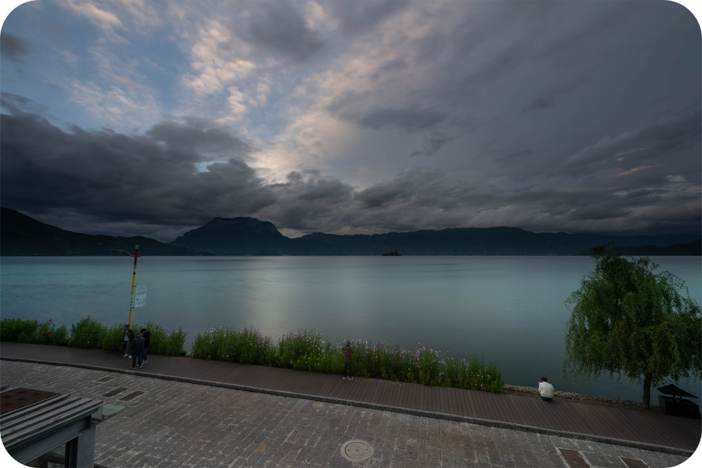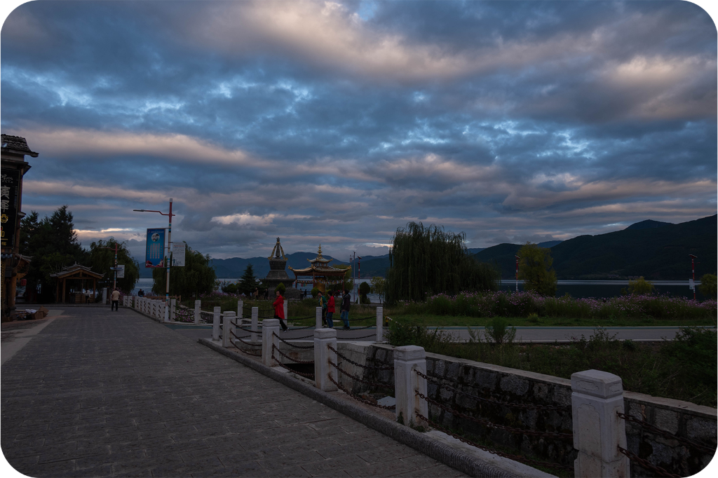 结束了篝火晚会的观看,一边走在湖边的木栈道上,一边欣赏着这美丽的湖畔夜景,美好的一天也就此落下帷幕~