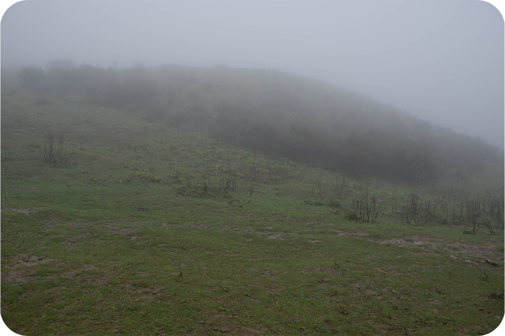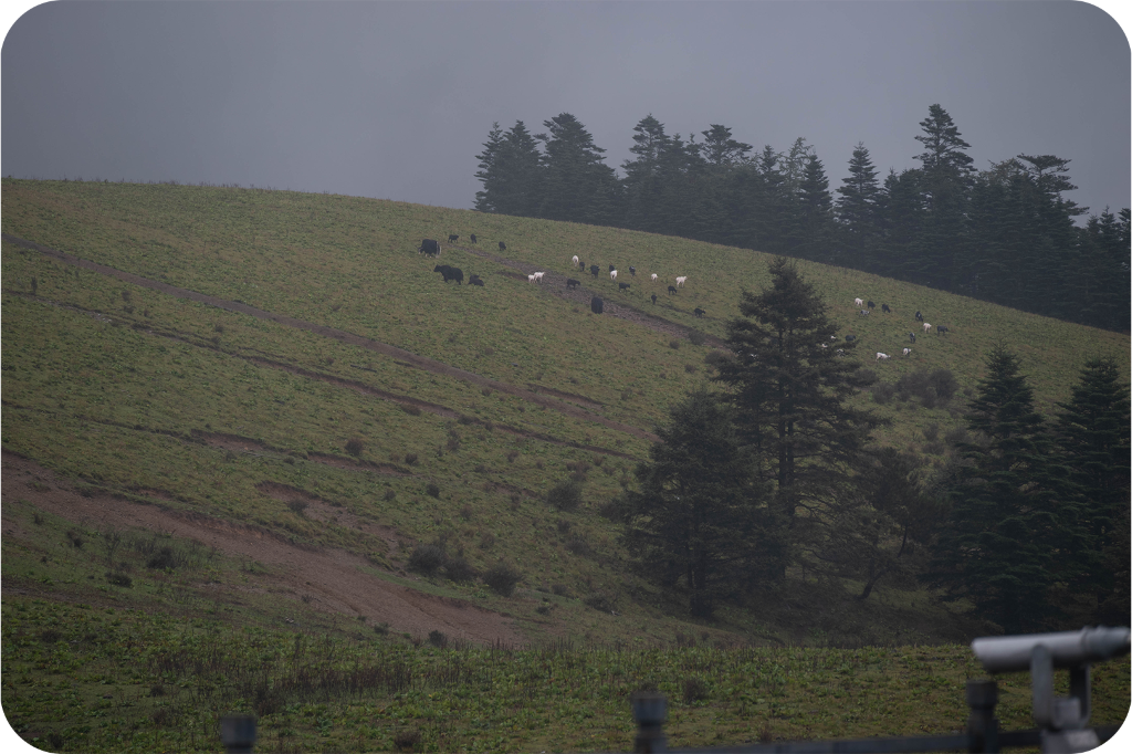一阵风吹过,雾气短暂地散开之后,终于见到了远处草坪上的牛羊。