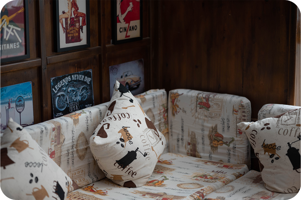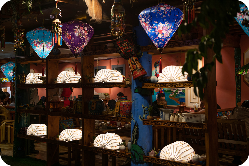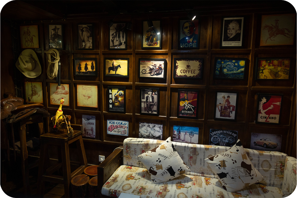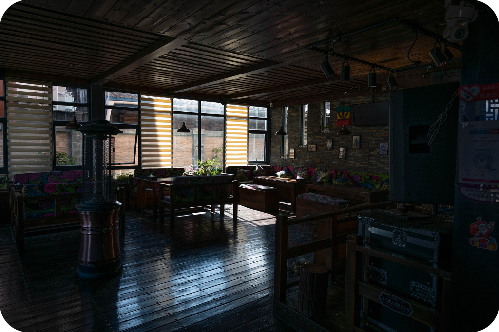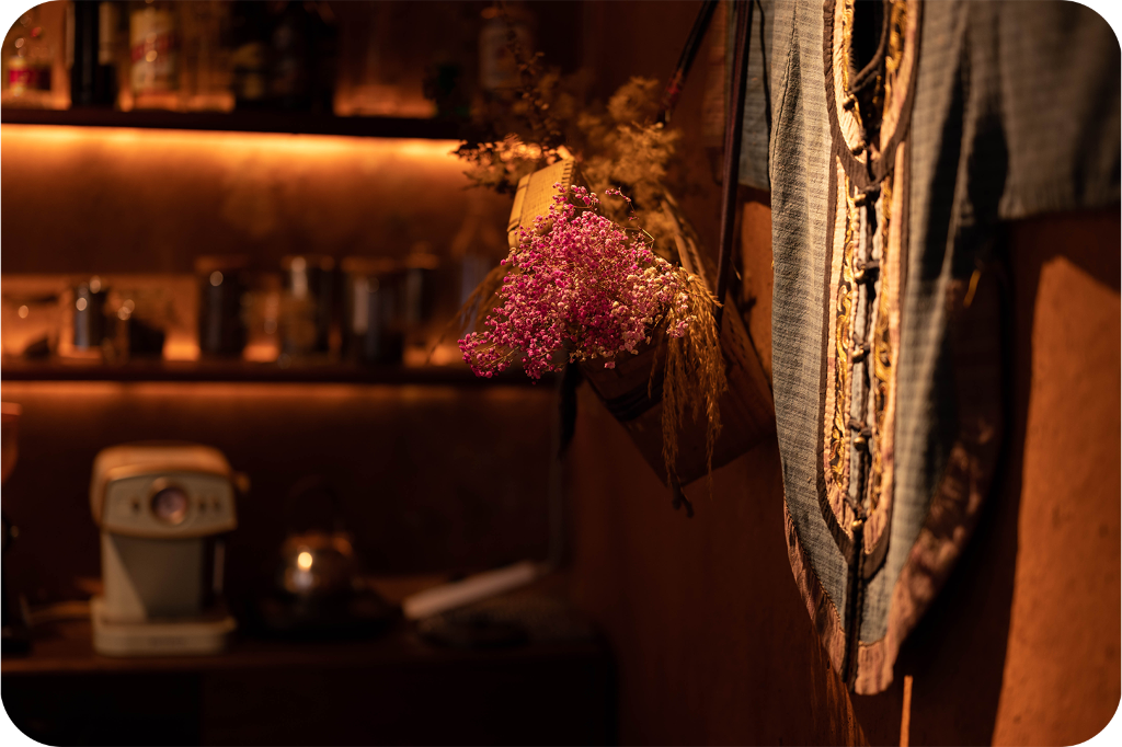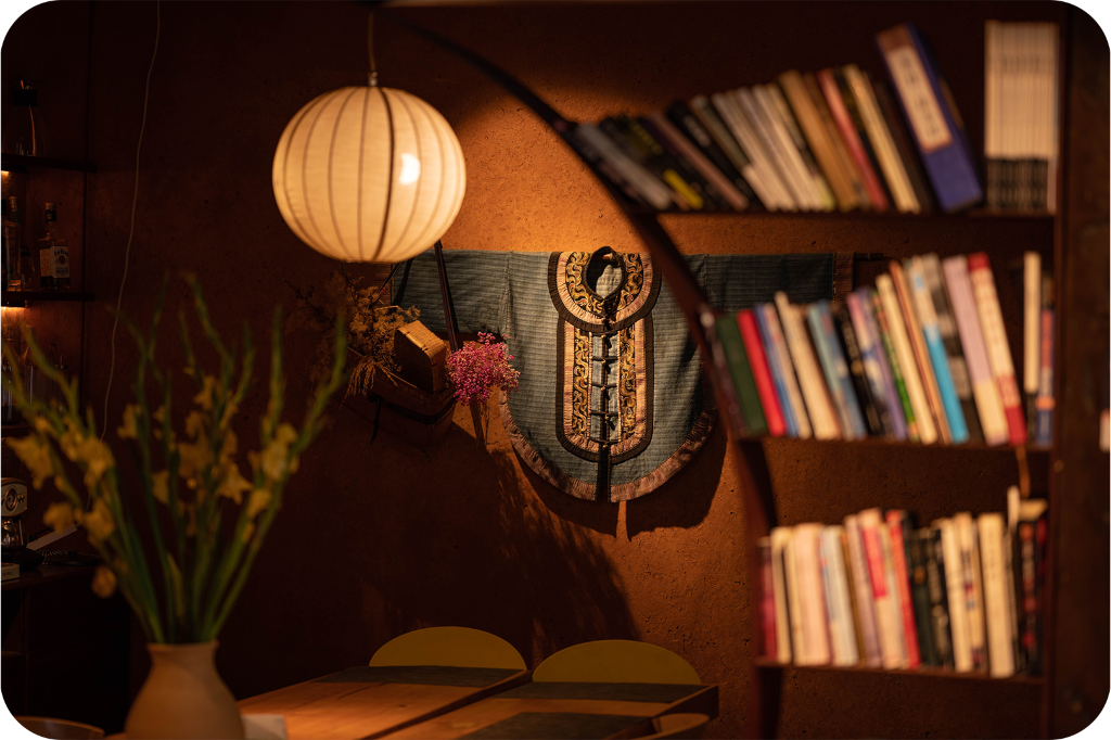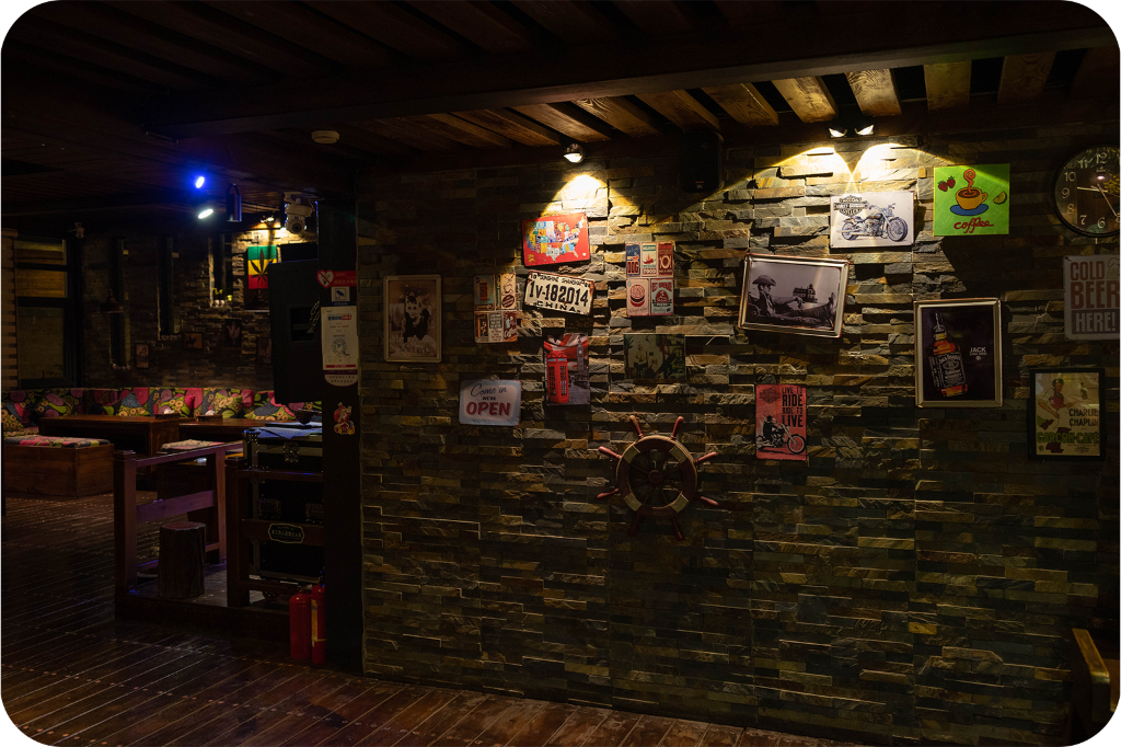 不同于白天的民族风,晚间的酒店则多了一分酒吧的感觉。