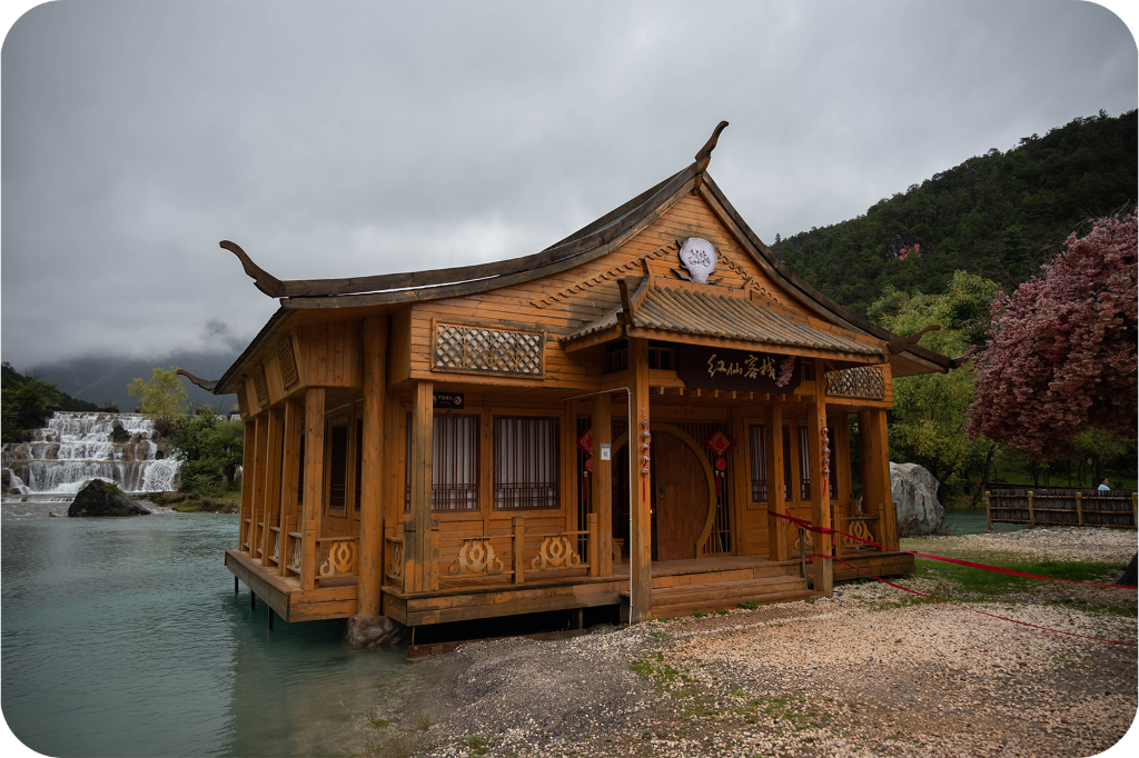镜潭湖旁边,有一个叫做红仙客栈的小木屋。