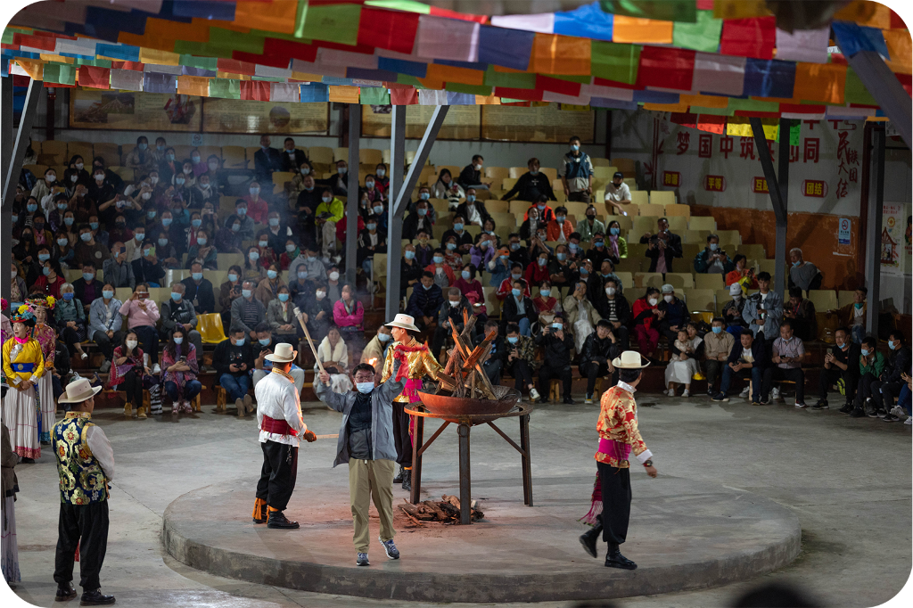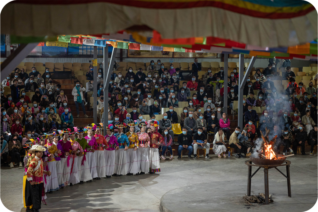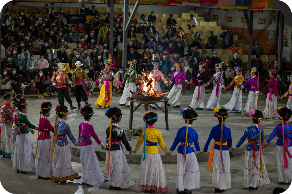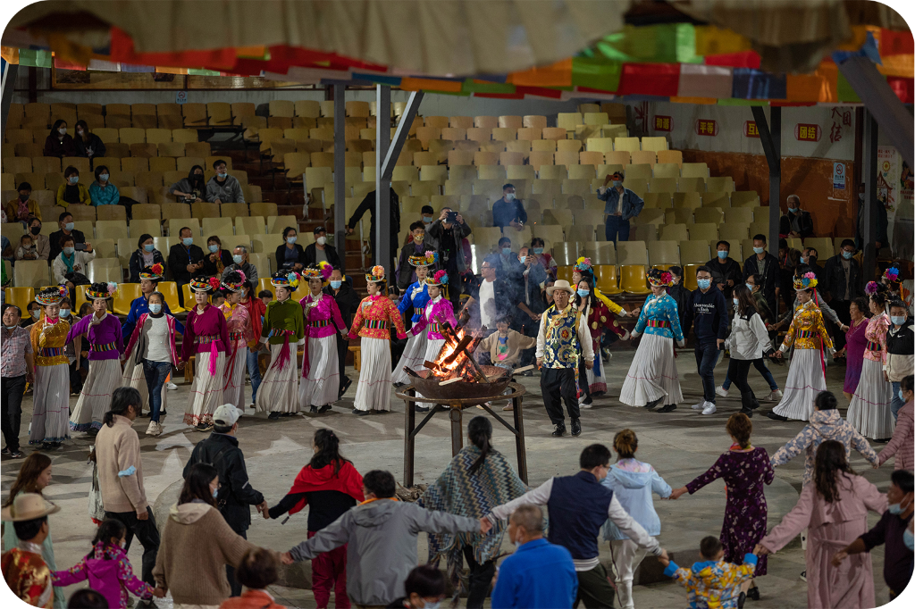 点火仪式完成之后,伴随着火堆的徐徐燃烧,篝火晚会也正式开始。