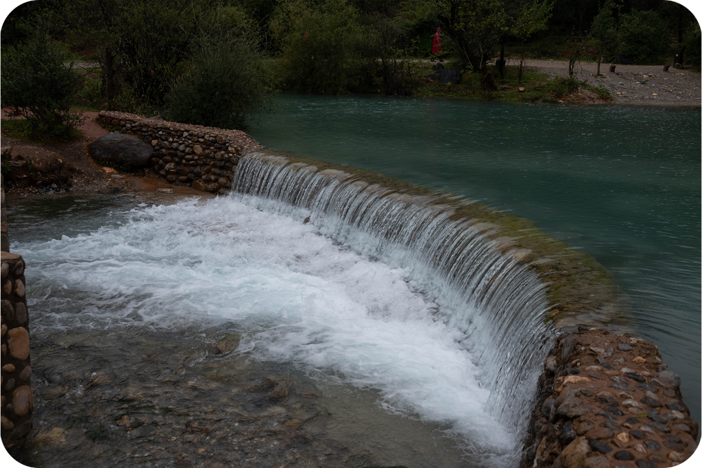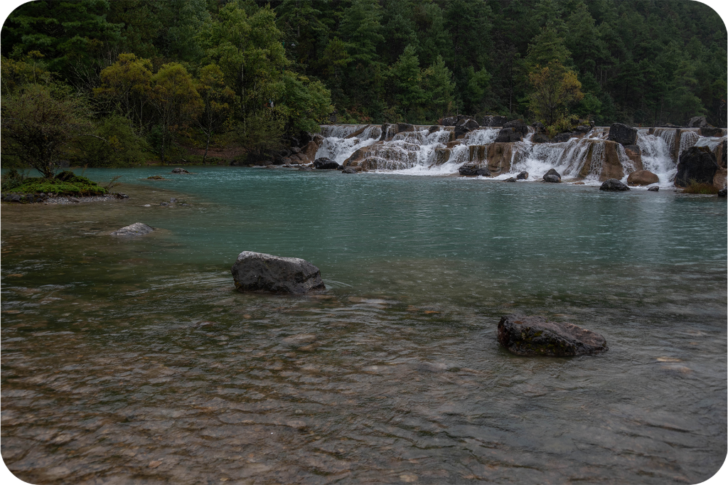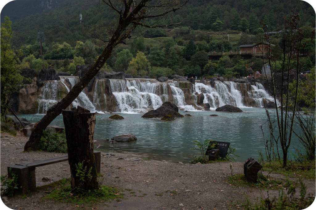 而形成这个瀑布的湖泊,就是蓝月谷内最大的湖泊:玉液湖。