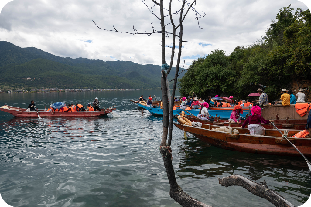 因为四川Y&Q的原因,目前泸沽湖只能游玩云南这边的半个湖,湖中间的里务比岛也成为了能够到达的最远端。
