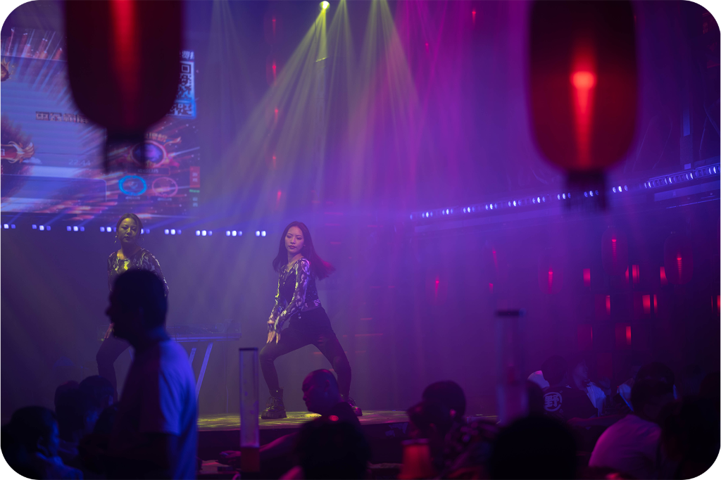 走在酒吧一条街上,透过窗户还可以看到其他各家酒吧内的表演。