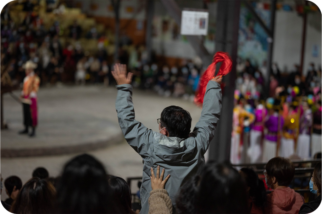 随着晚会的进行,周围的观众也陆续加入其中,晚会的气氛也到了最高潮。