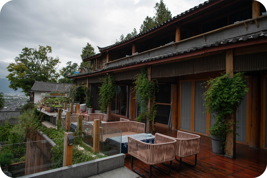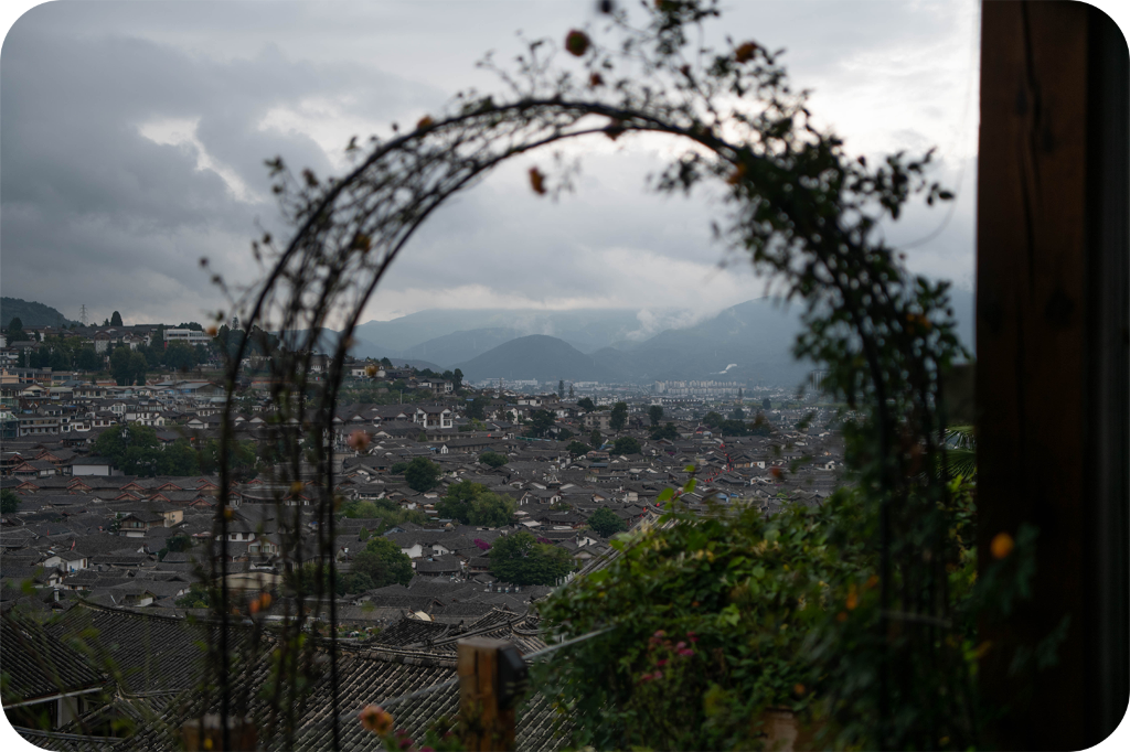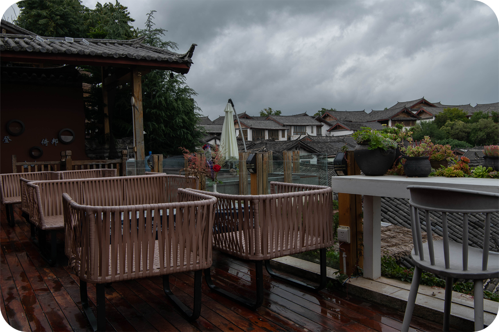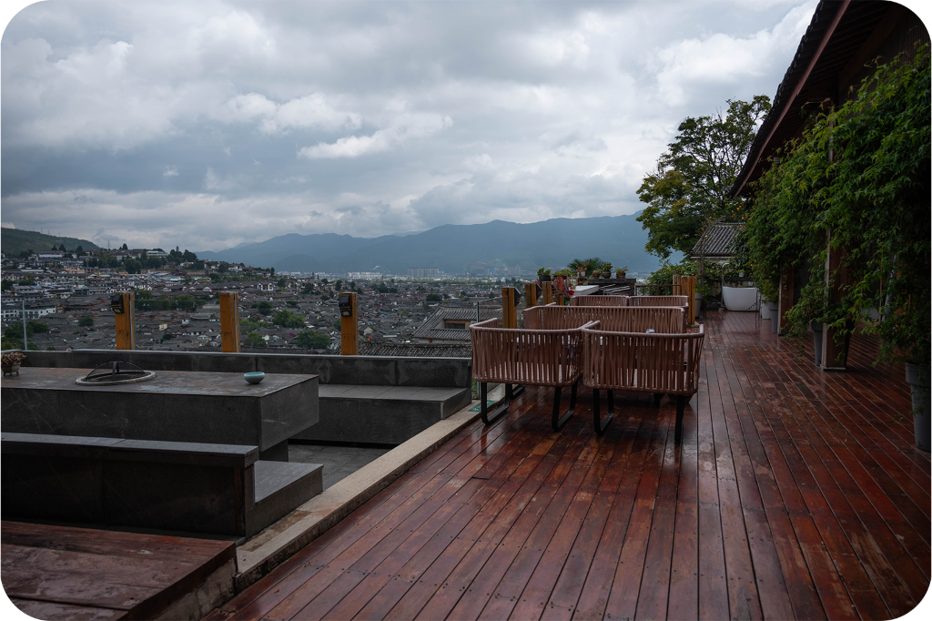 客栈位于丽江古城的狮子山上,所以在露台上就可以一览丽江古城的全貌。
