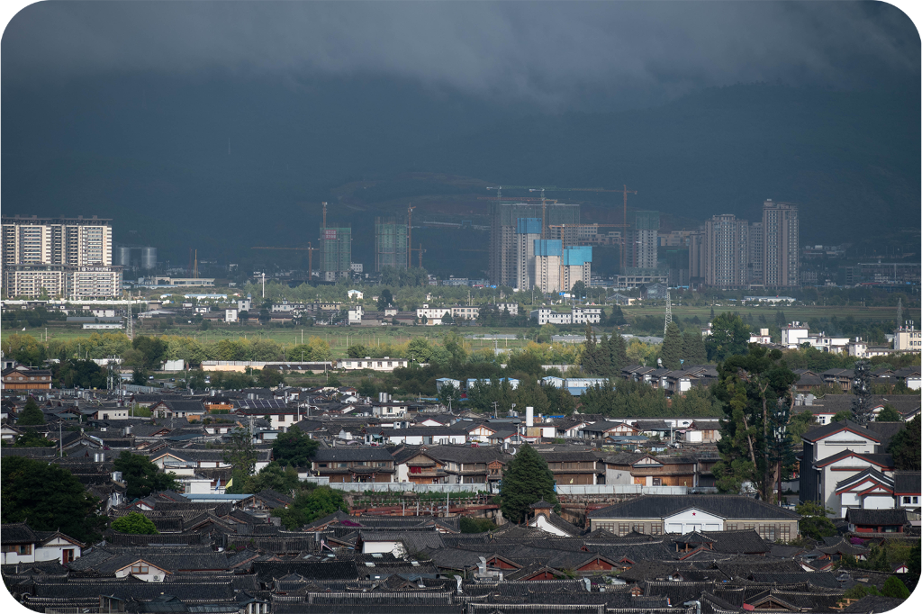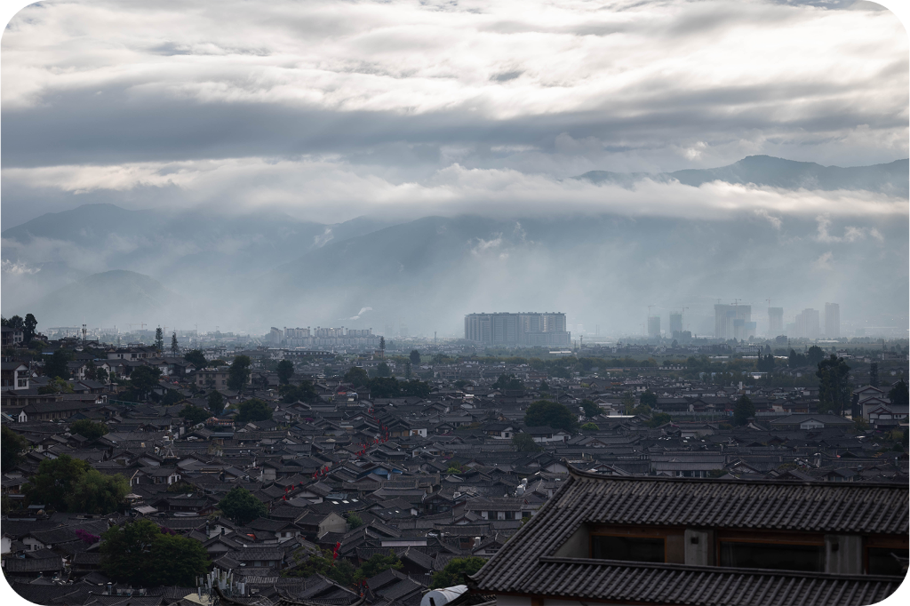雨季的丽江,天气说变就变,前一秒还是阴雨绵绵,此时天空又出现了一抹蓝色。