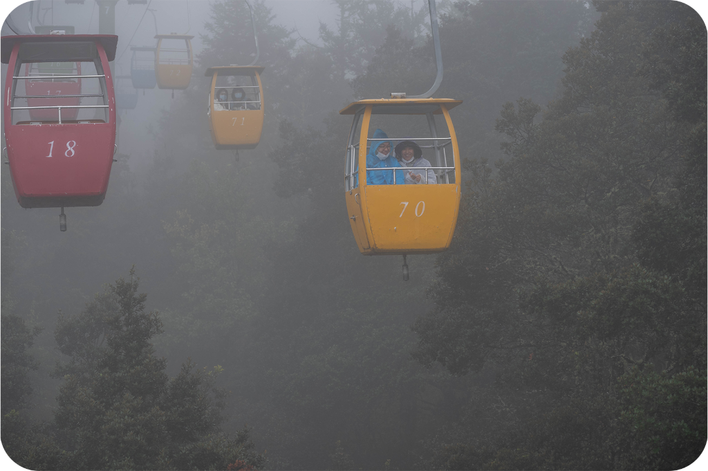 不同于大索道的缆车,中索道的每辆缆车里最多只能坐两个人。