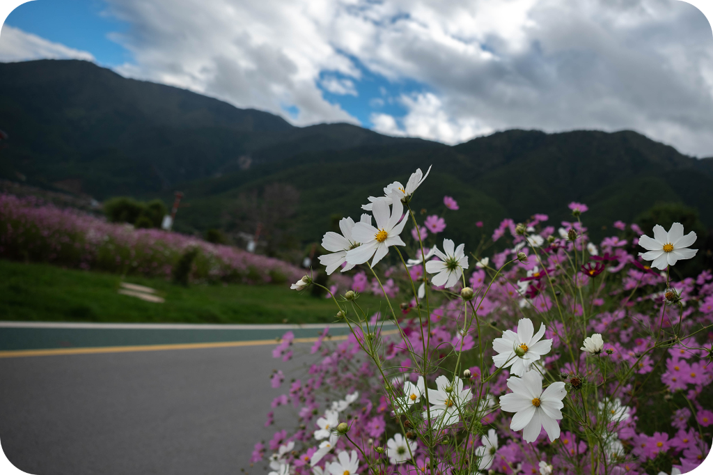 这条最美公路的两旁,同样也盛开着各种颜色的格桑花。