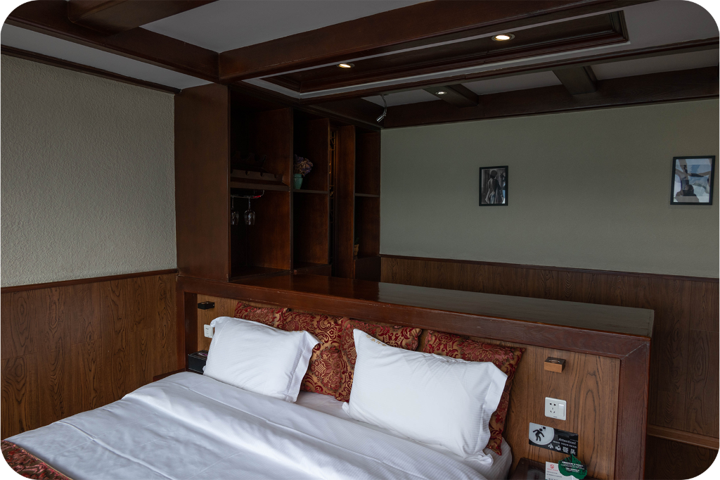 酒店的湖畔大床房,有着更好的观湖体验,站在客房自带的大阳台上,就可以远眺这绝美的湖光山色。