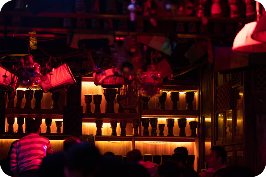 根据客栈小哥哥的推-荐,我便来到了这家手-鼓_体-验-吧来体验丽江古城的酒吧文化。