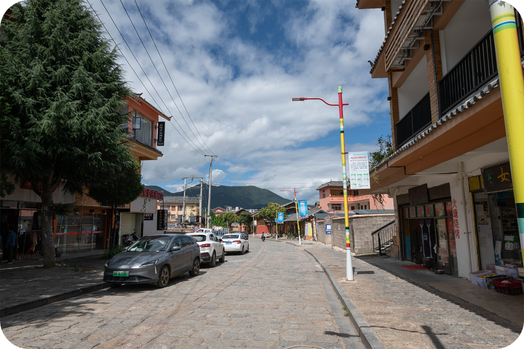 走出客栈,没有了行人的喧嚣,古城的街道也有着宁静的一面。