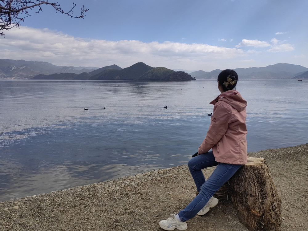 网上对泸沽湖的评价褒贬不一,我觉得主要是天气对景色的影响很大,晴天的湖景很美,阴天就很普通了。我们这几天正好是晴空万里,湖水和天空都是明亮清澈的蓝色,蓝得醉人。