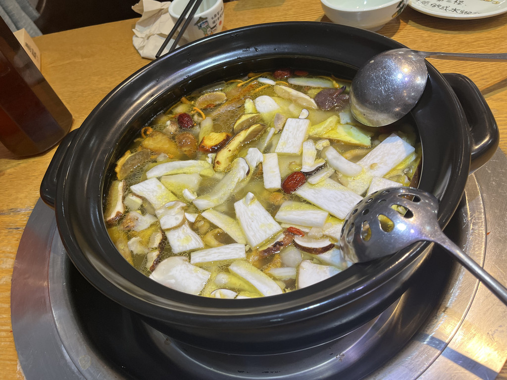 午饭必须安排:菌汤锅,最好选择连锁店。味道鲜美些,野生菌很少都是隔天冷藏的!